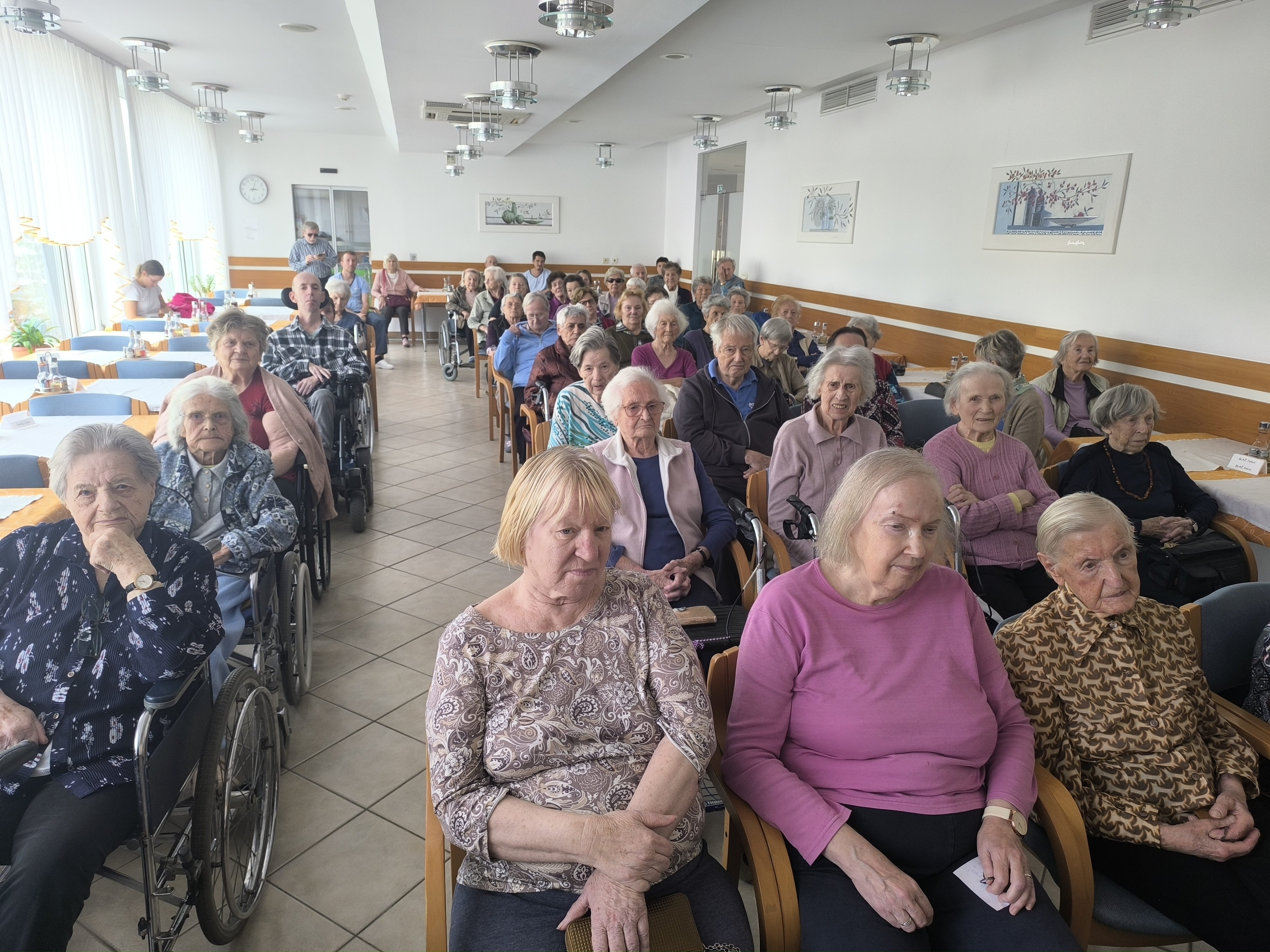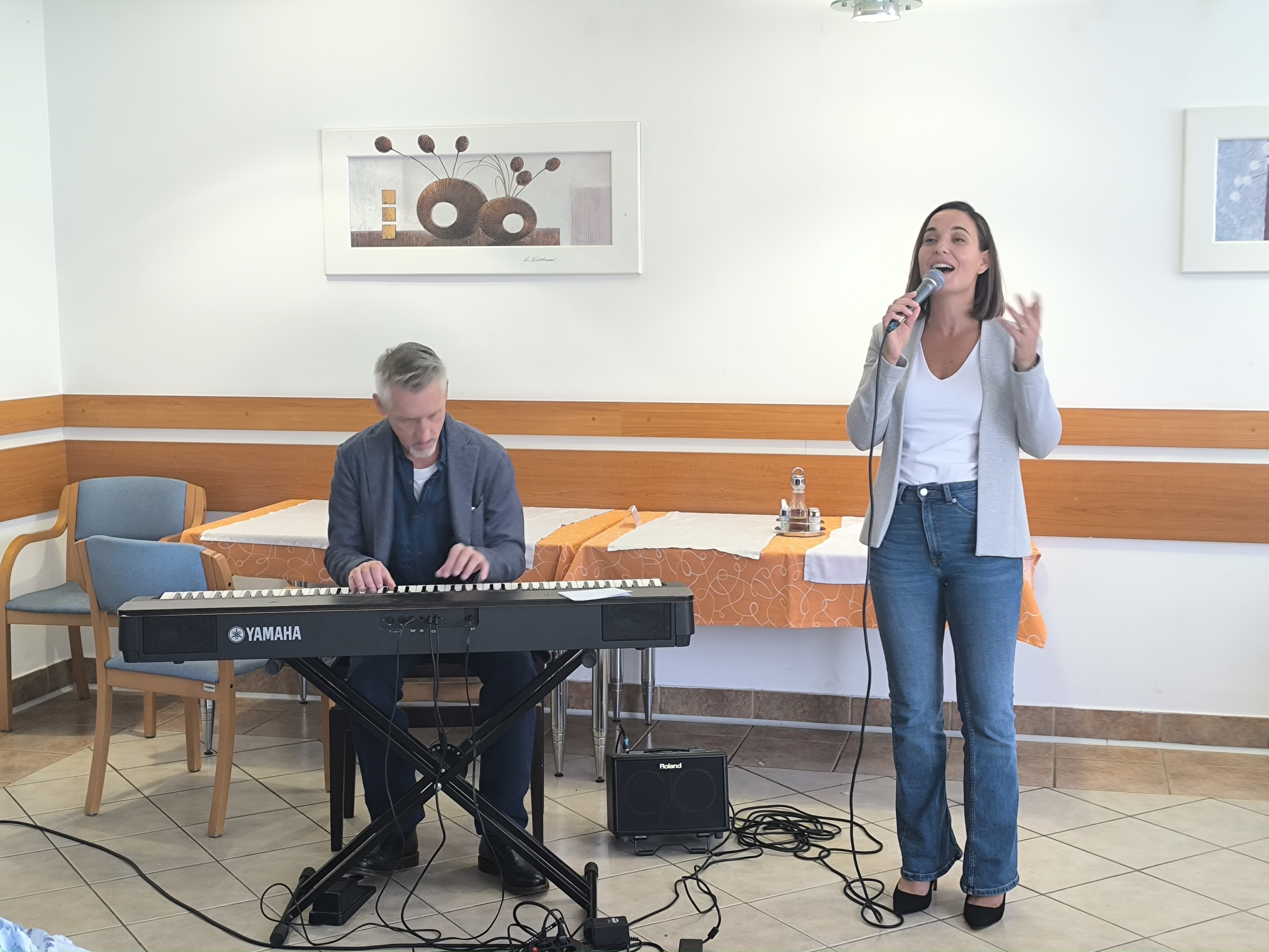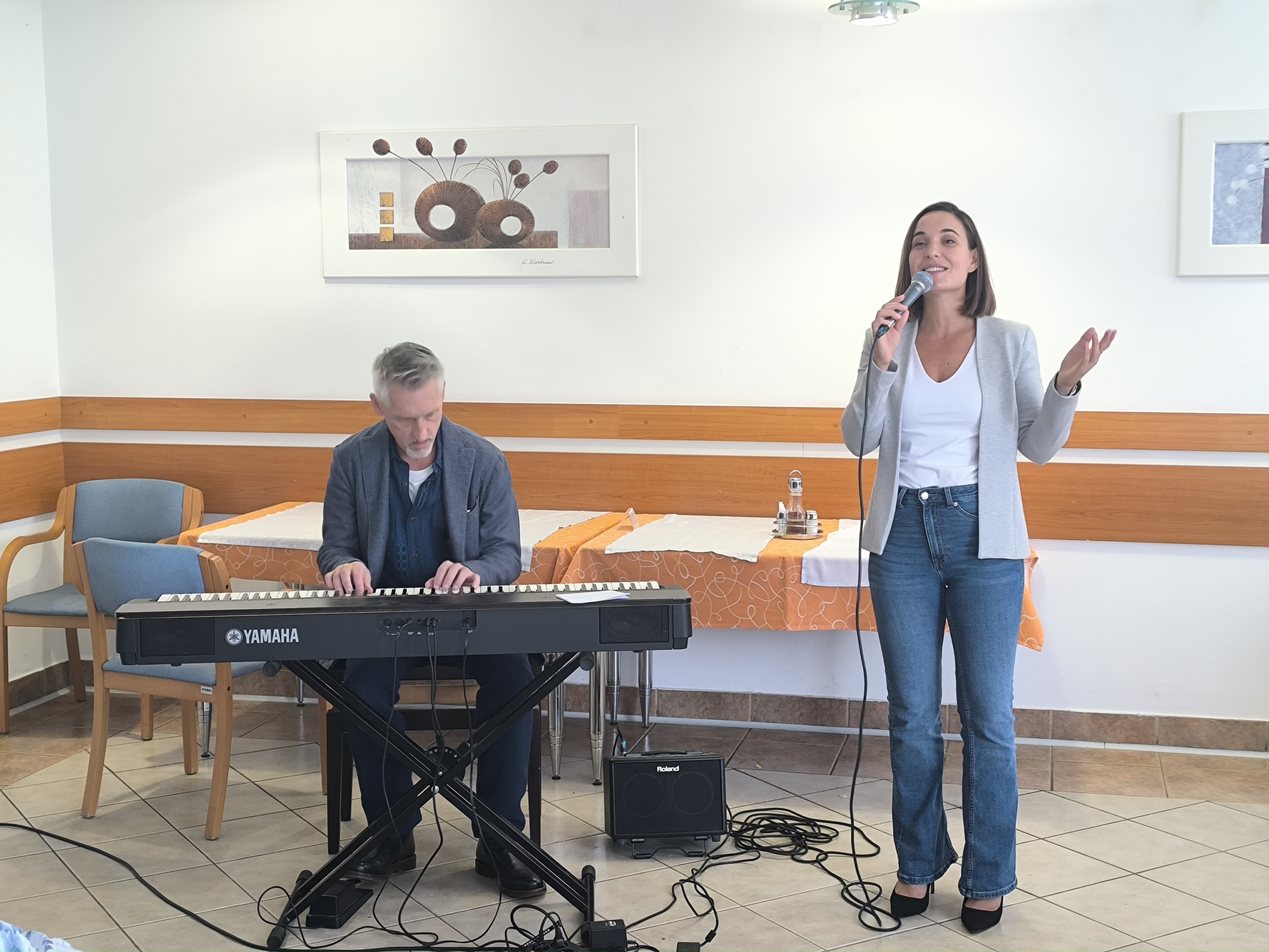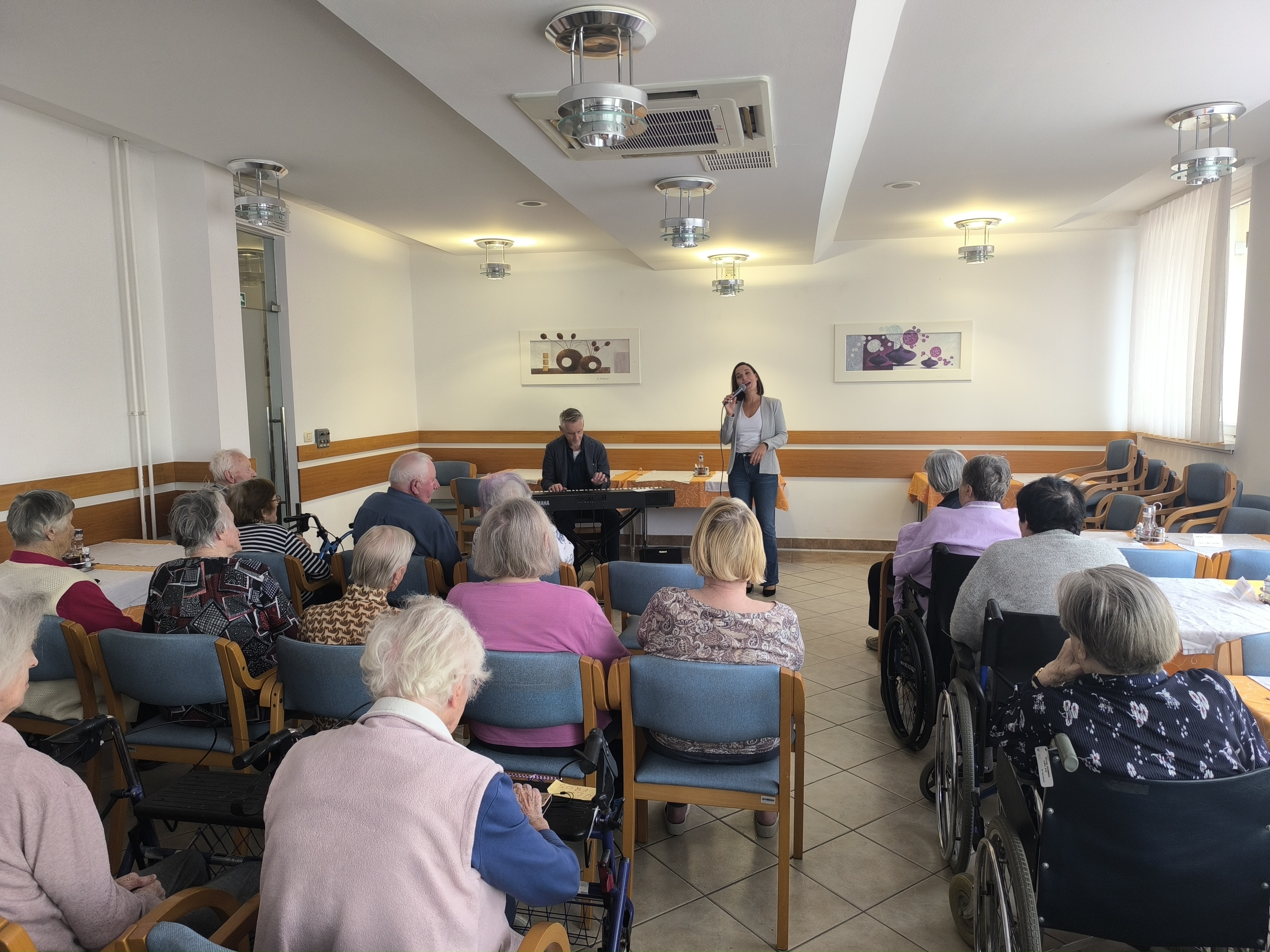 V sredo, 15.10.2025 sta se nam v našem domu pridružila Nina Strnad in Peter Mihelič. Popoldne je bilo prežeto z glasbo, čustvi in iskreno energijo. Skozi znane in priljubljene melodije, kot so: »Med iskrenimi ljudmi«, »Zemlja pleše«, »Nad mestom se dani« in nepozabno »What a Wonderful World« sta nam ustvarila toplo, domače vzdušje, ki je poskrbelo, da so bili stanovalci polni veselja, nostalgije in iskrenih čustev. Stanovalci so z navdušenjem z njima prepevali, ob koncu pa nastop nagradili z dolgim in bučnim aplavzom. Dogodek je bil dokaz, da glasba pomirja, povezuje in prebuja spomine, kateri so v srcih pustili posebne sledi.