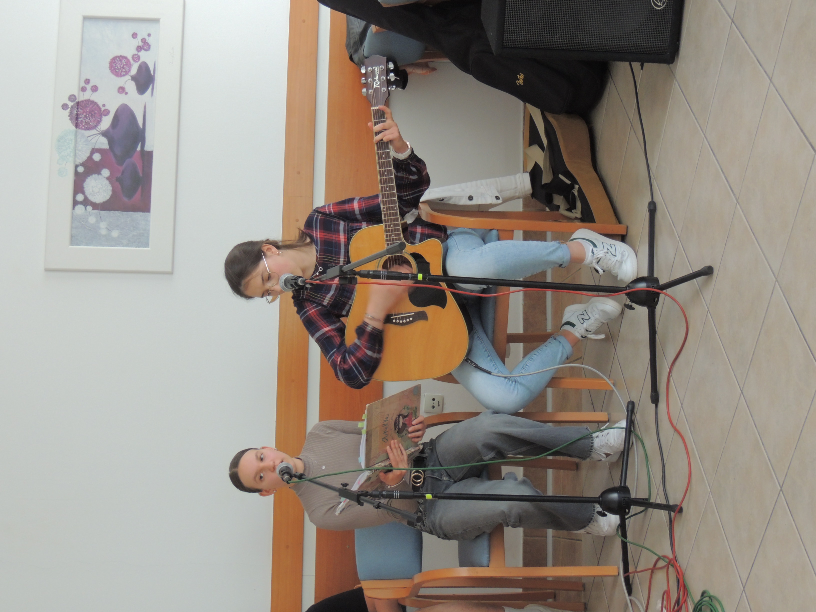 Prva je nastopila Tajda, bivša dijakinja, ki trenutno opravlja prakso v dijaškem domu. Zaigrala je klasično skladbo na violino – z veliko predanostjo in umetniškim občutkom, saj se letos pripravlja na sprejemne izpite na Glasbeno akademijo. Sledili sta cimri Klara in Kaja, ki sta s svojim ubranim petjem ogreli srca poslušalcev s pesmimi: Povej, povej mi, Marina, Na planini je živel in Krokodilčki.