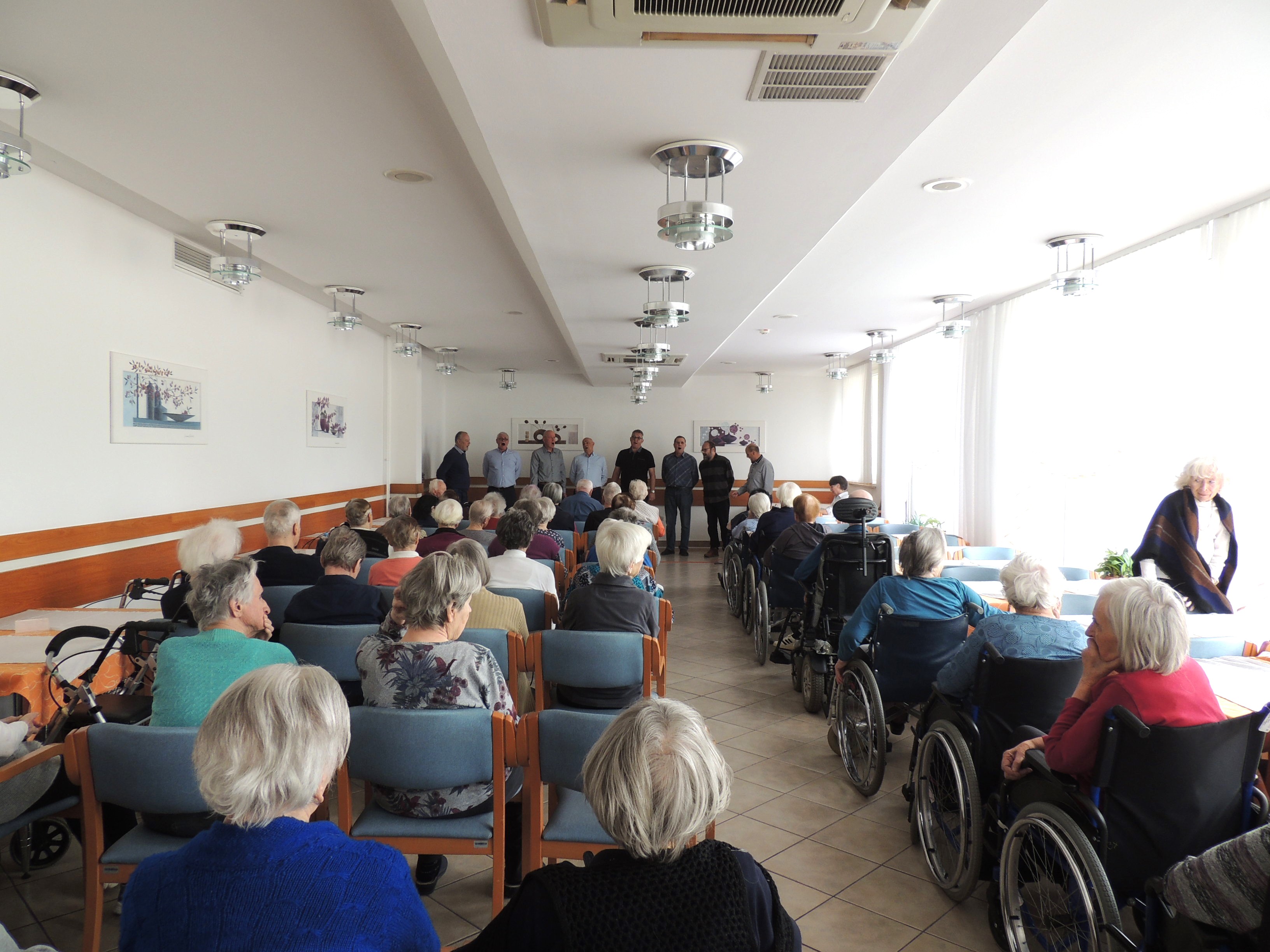V sredo, 9. aprila 2025, smo v veliki jedilnici doma gostili pevce – Fante Ljubljančane, ki so s svojim petjem ogreli srca naših stanovalcev. Skupino sestavljajo prijatelji, ki so se spoznali v študentskih letih, ko so plesali pri Akademski folklorni skupini France Marolt. Povezala sta jih ljubezen do slovenskega ljudskega izročila ter prijateljstvo, ki traja že vrsto let.