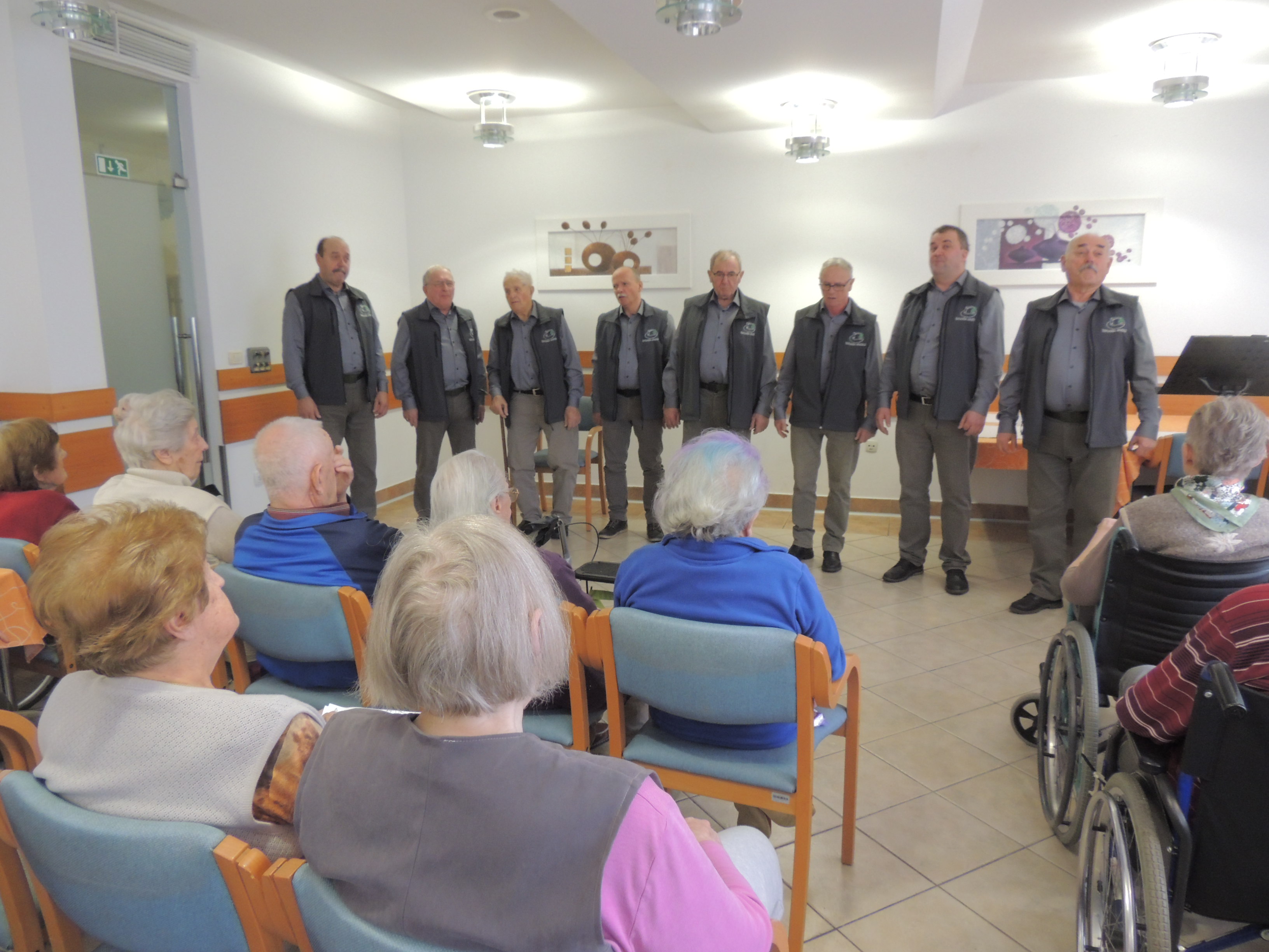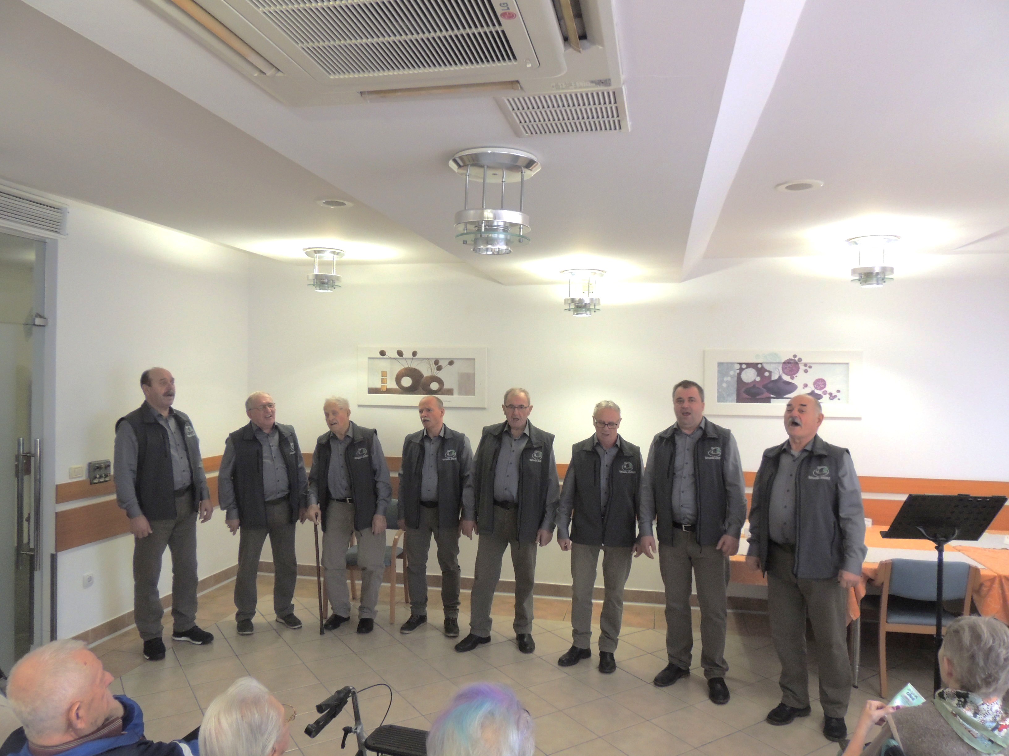 Spomine na številne nastope in dogodke iz bogate zgodovine skupine je stanovalcem in stanovalkam prijazno približal vodja skupine, gospod Metod Pečar, ki je z osebnimi pripovedmi še dodatno obogatil srečanje. Vokalna skupina je tudi vpisana v register nesnovne kulturne dediščine, kar potrjuje njihov pomemben prispevek k ohranjanju slovenske kulturne identitete.