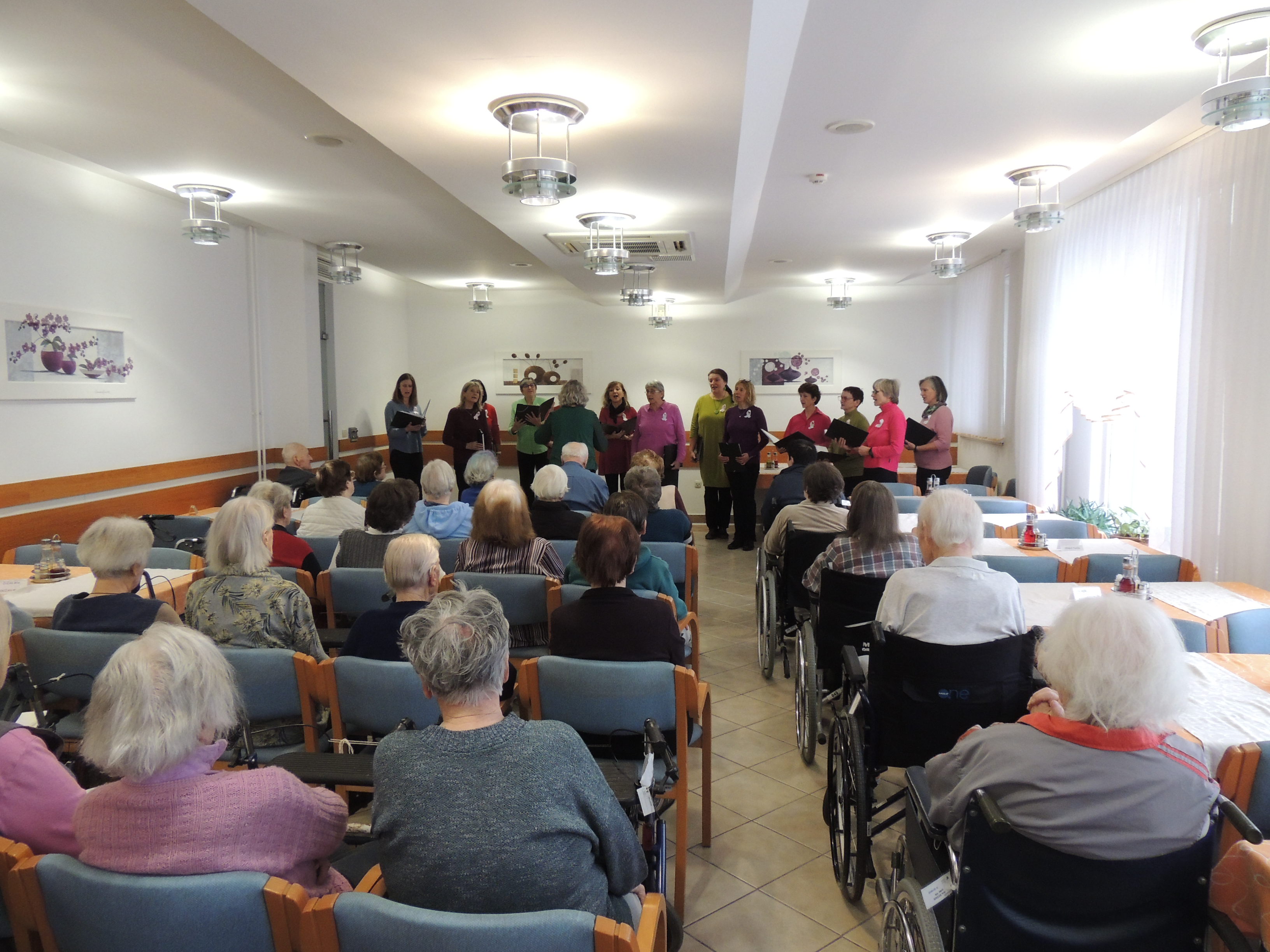 Pevke so pod vodstvom Janja Debeljak z ubranim petjem napolnile veliko jedilnico ter poslušalce popeljale v bogat svet slovenskega glasbenega izročila. Poseben čar koncertu je dalo dejstvo, da so pevke k sodelovanju povabile tudi stanovalce in stanovalke doma, ki so se z veseljem pridružili petju.
