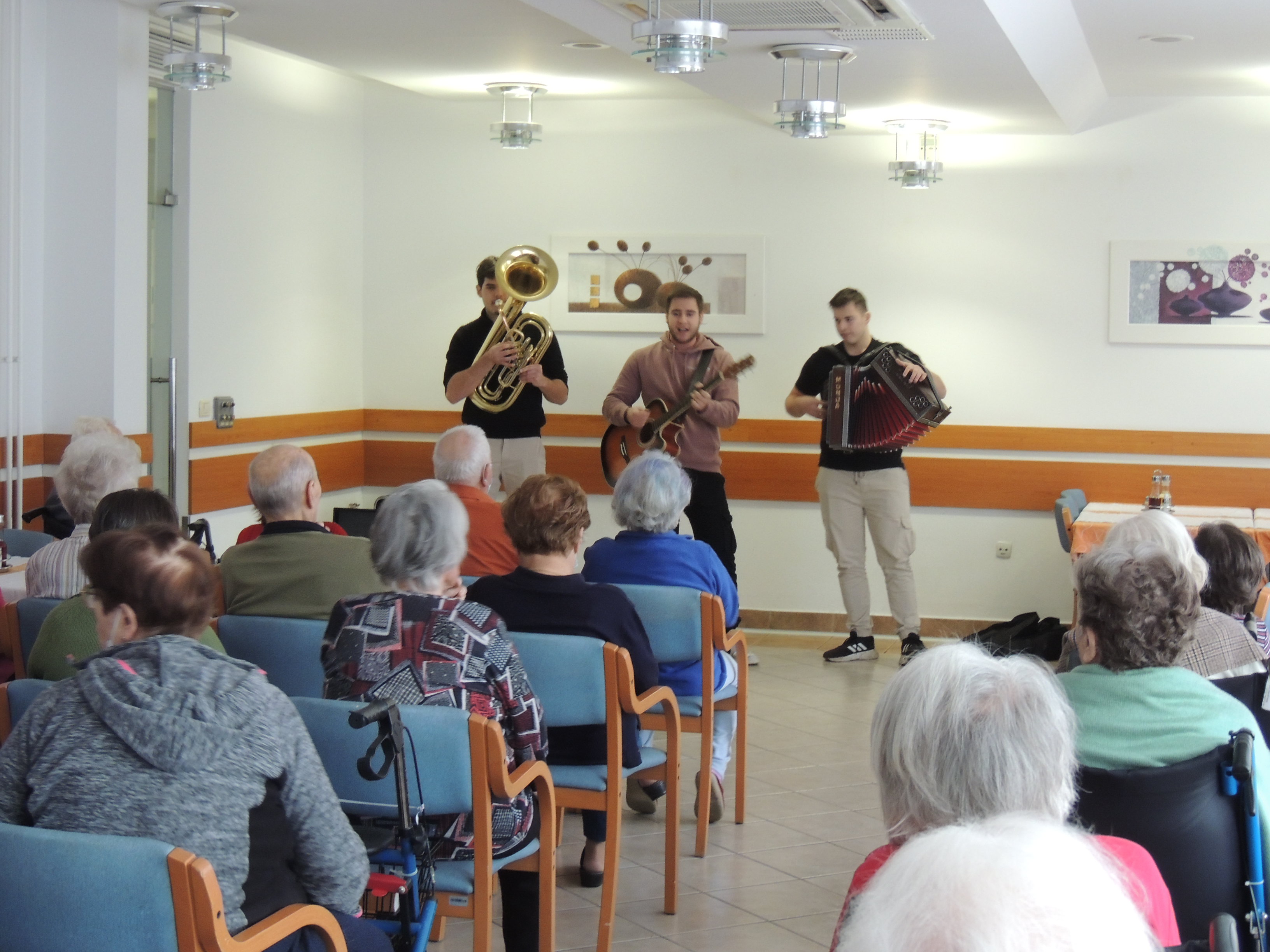 Stanovalci so z veseljem prisluhnili in ob glasbi ploskali, prepevali in se z nasmehi prepustili ritmom znanih melodij. Vzdušje je bilo sproščeno, veselo in zelo domače.