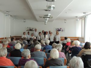 Zbor je pripravil zanimiv izbor narodnih in ljudskih pesmi, ki so stanovalke in stanovalce popeljale v mladost – v čase, ko so se ljudje več družili, peli ob ognjišču in si podajali zgodbe iz ust do ust, saj sodobne tehnologije takrat še ni bilo.