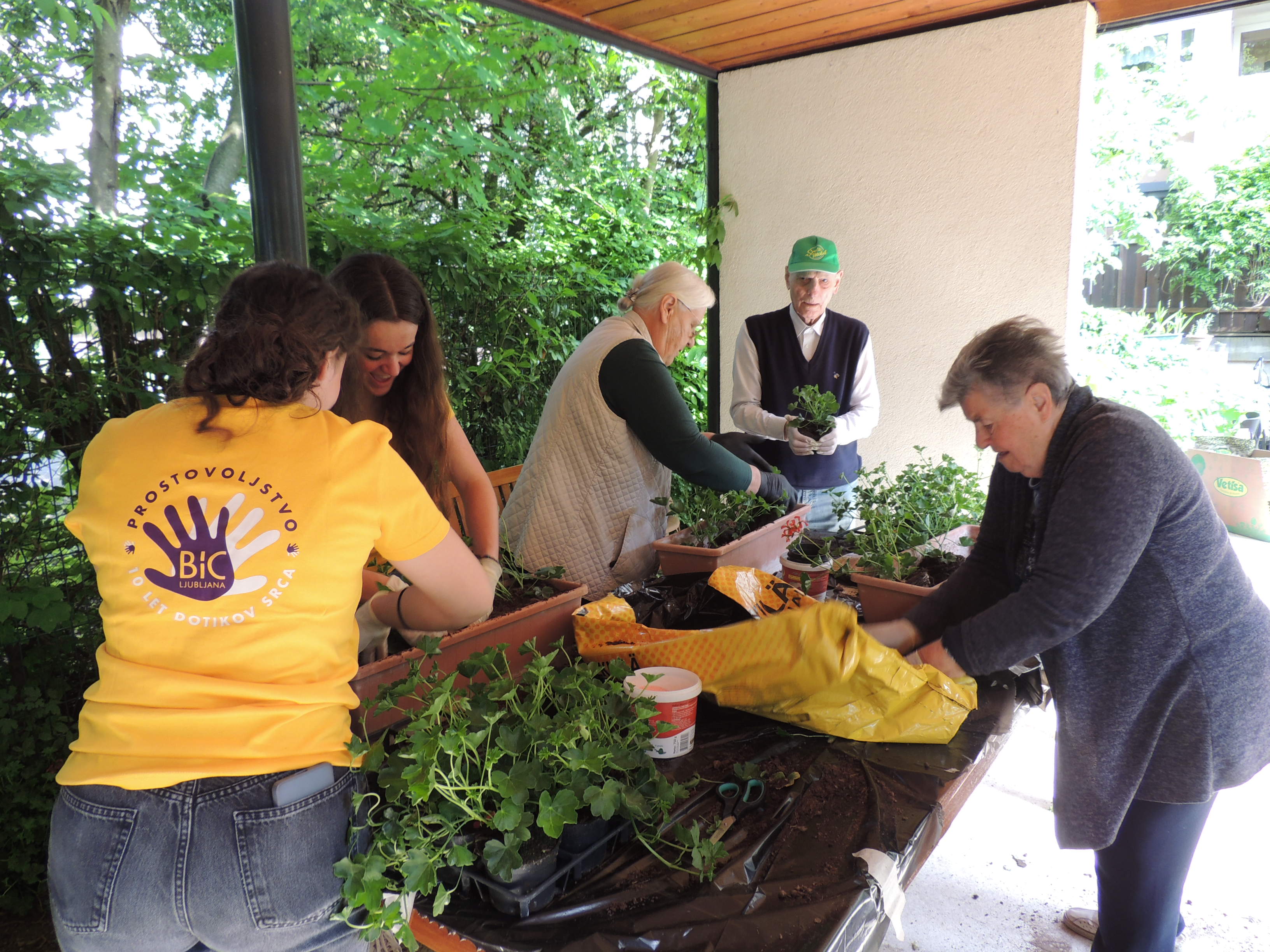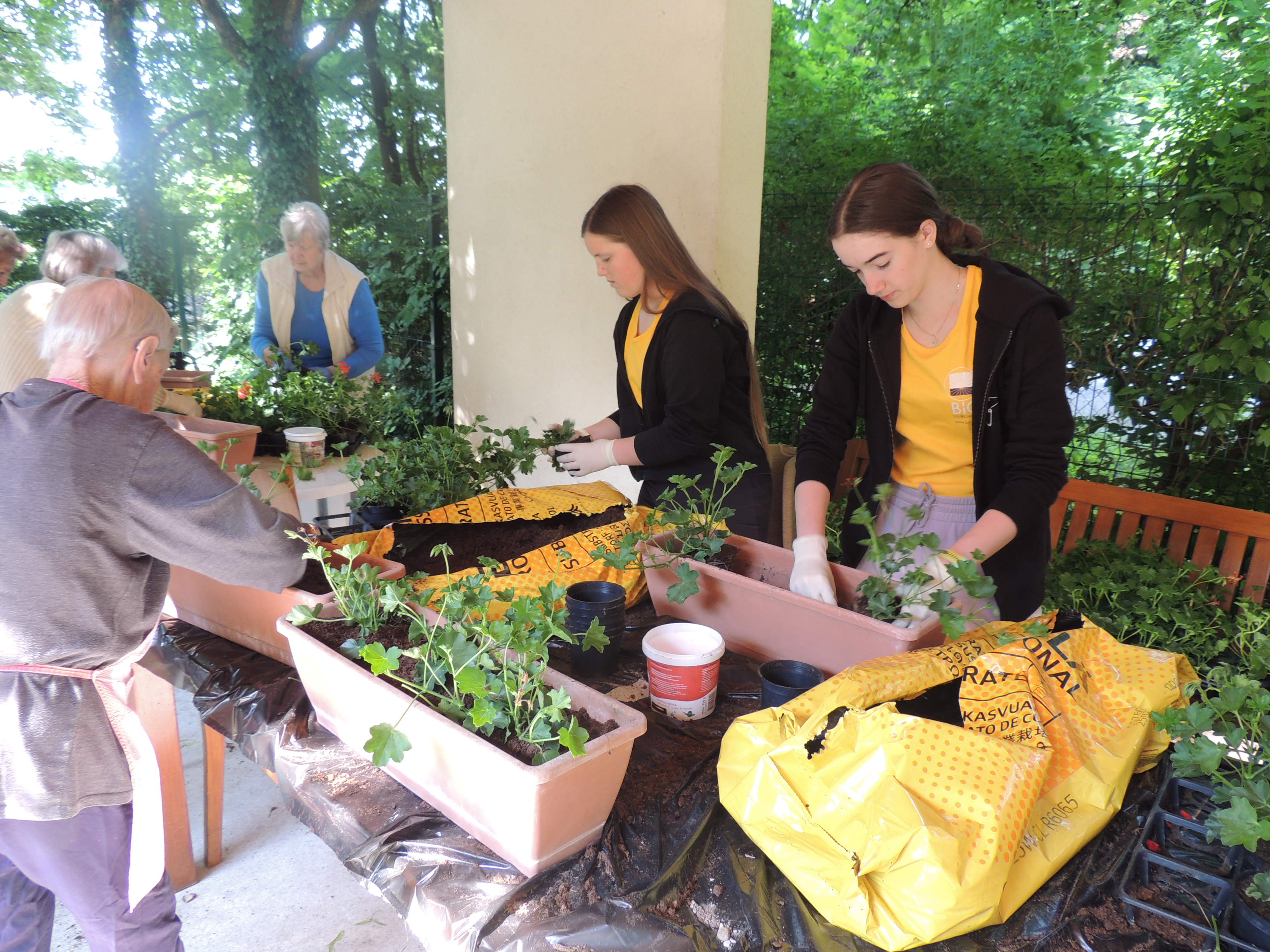 Ob sajenju so se med generacijami spletle vezi. Stanovalke so prostovoljkam zaupale nasvete in izkušnje pri presajanju pelargonij, prostovoljke pa so z zanimanjem poslušale in pomagale pri delu. Dogodek je spodbudil sodelovanje, prijetno druženje in pogovor ter nas spomnil, kako dragoceni so skupni trenutki in povezovanje različnih generacij.