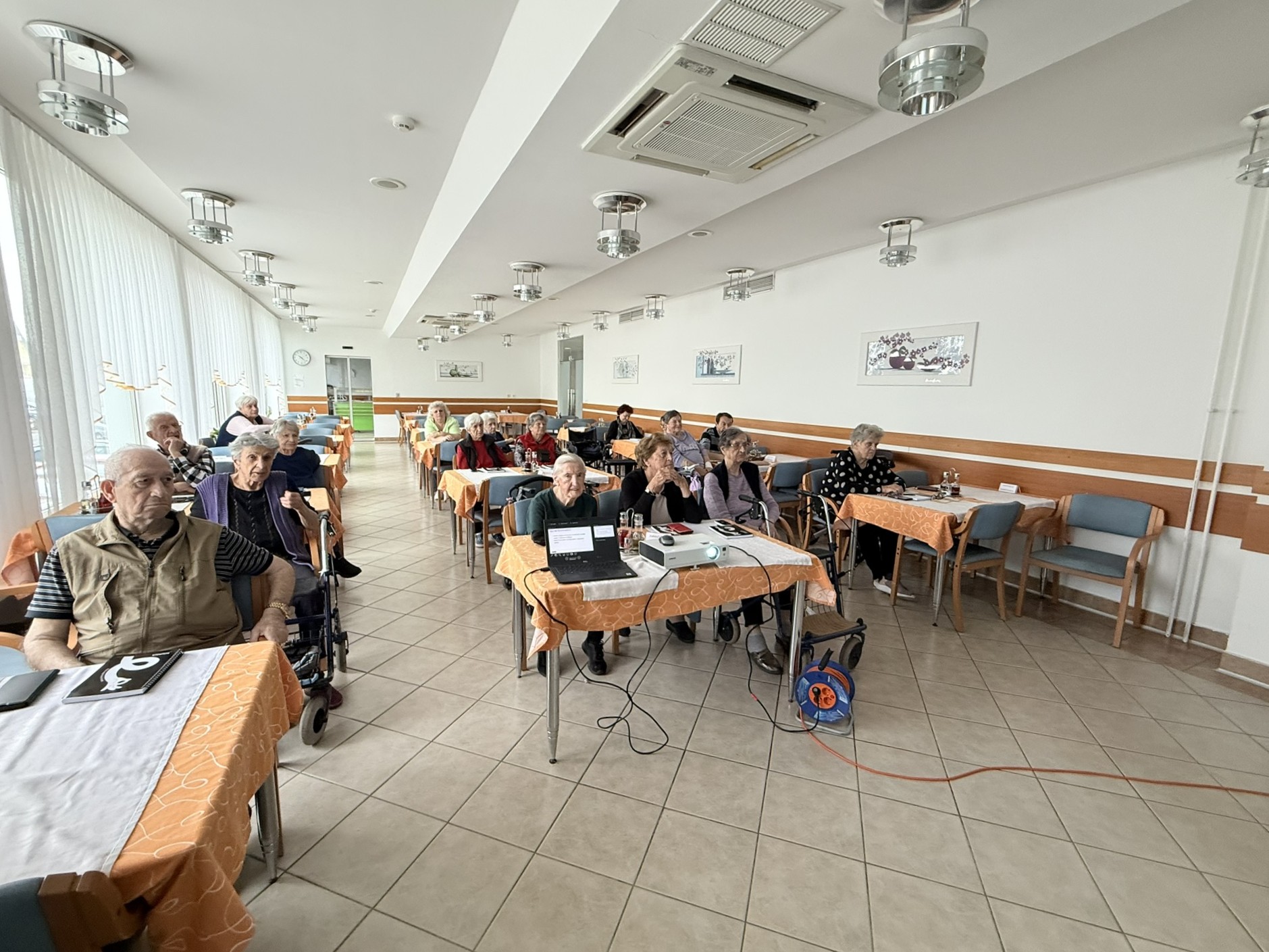 V ponedeljek, 30. marca 2026, je v veliki jedilnici Doma starejših občanov Bežigrad potekala poučna in interaktivna delavnica na temo uporabe sodobnih tehnologij. Delavnico so izvedli predstavniki podjetja Telemach, ki so stanovalcem na razumljiv način približali svet mobilnih storitev, komunikacije in varne uporabe telefona.