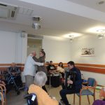 V sredo, 12. 11. 2025, so nas obiskali dijaki iz Dijaškega doma Bežigrad. Na začetku nam je dijakinja predstavila kamišibaj. Kamišibaj je japonska umetnost, ki združuje pripovedovanje, literaturo in likovno umetnost. Beseda je sestavljena iz dveh japonskih izrazov: kami pomeni papir, šibaj pa gledališče – zato kamišibaj imenujemo tudi papirnato gledališče. Dijakinja nam je pripovedovala kratke, a zelo zanimive pravljice, ki so stanovalce lepo pritegnile.