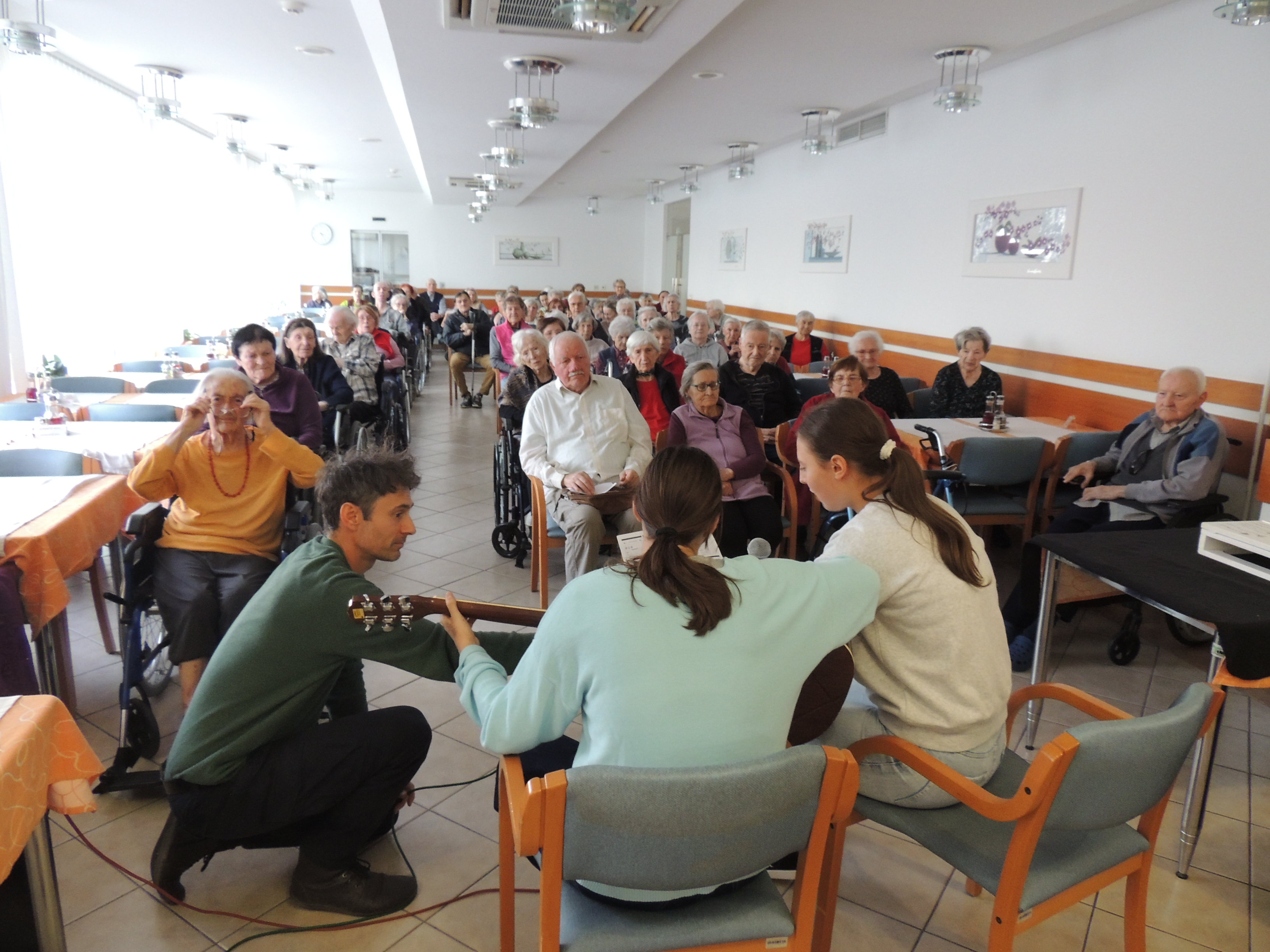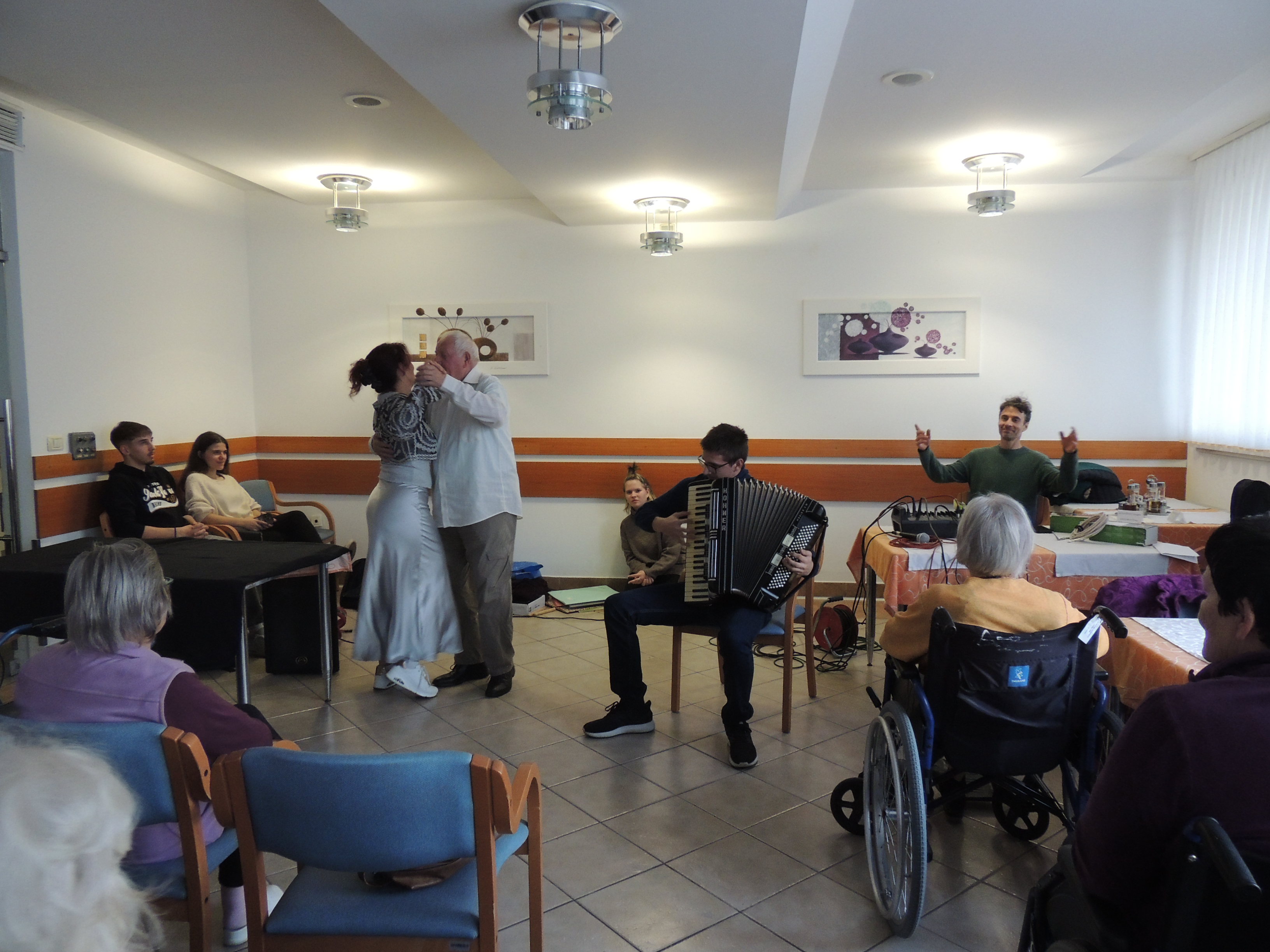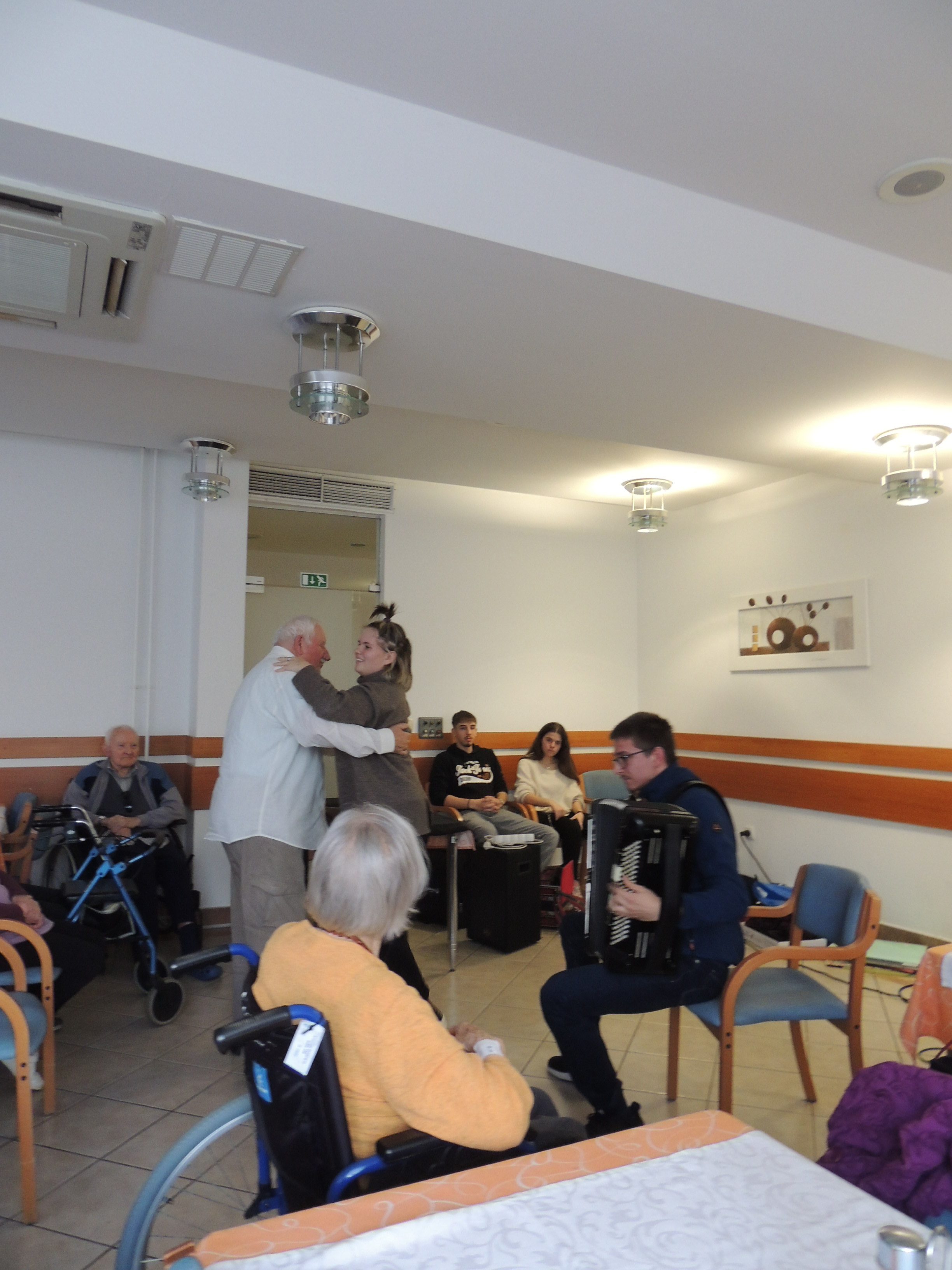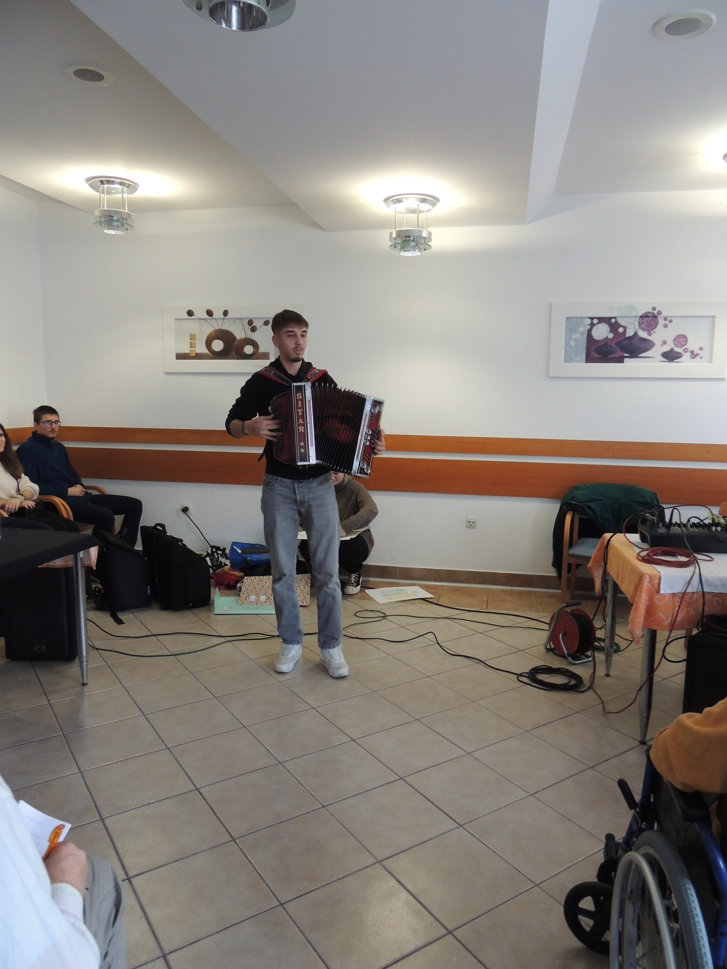 Nato je sledil nastop dveh dijakinj, ki sta ob spremljavi kitare zapeli pesem. Njuna glasova sta ustvarjena čudovito, toplo vzdušje. Sledil je nastop dijaka, ki je na diatonično harmoniko zaigral znane slovenske melodije. Ob njegovem igranju so se nekateri stanovalci, so potihoma mrmrali pesmi in skupaj z vzgojiteljico Marino in dijakinjo iz Dijaškega doma tudi zaplesali, kar je ustvarilo poseben občutek povezovanja in veselja.