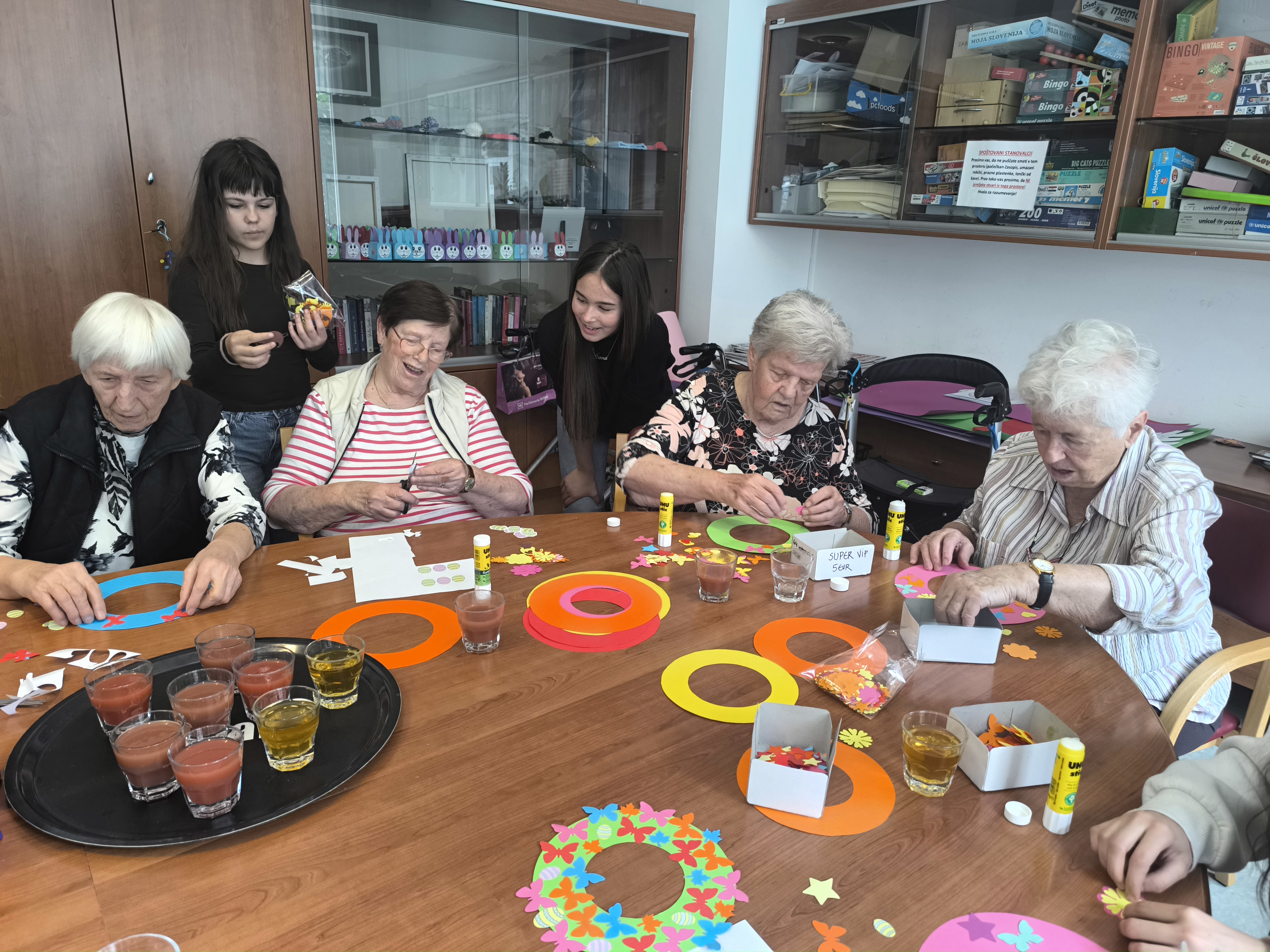 Delavnica je potekala v prijetnem in sproščenem vzdušju. Med delom ni manjkalo smeha, pogovora in lepih spominov. Stanovalke so pripovedovale, kako so nekoč doma pripravljale velikonočne praznike, učenci pa so z zanimanjem poslušali njihove zgodbe.