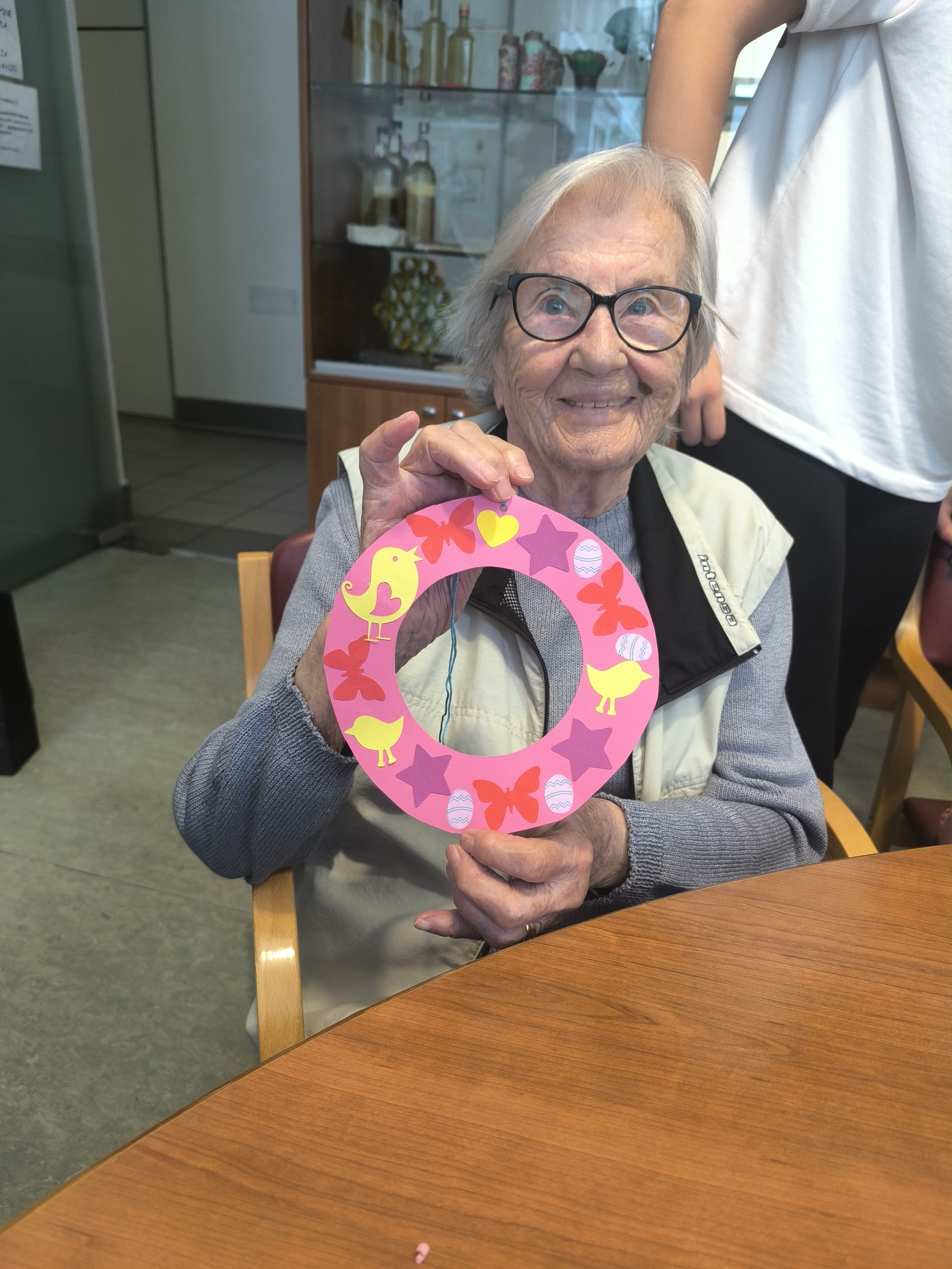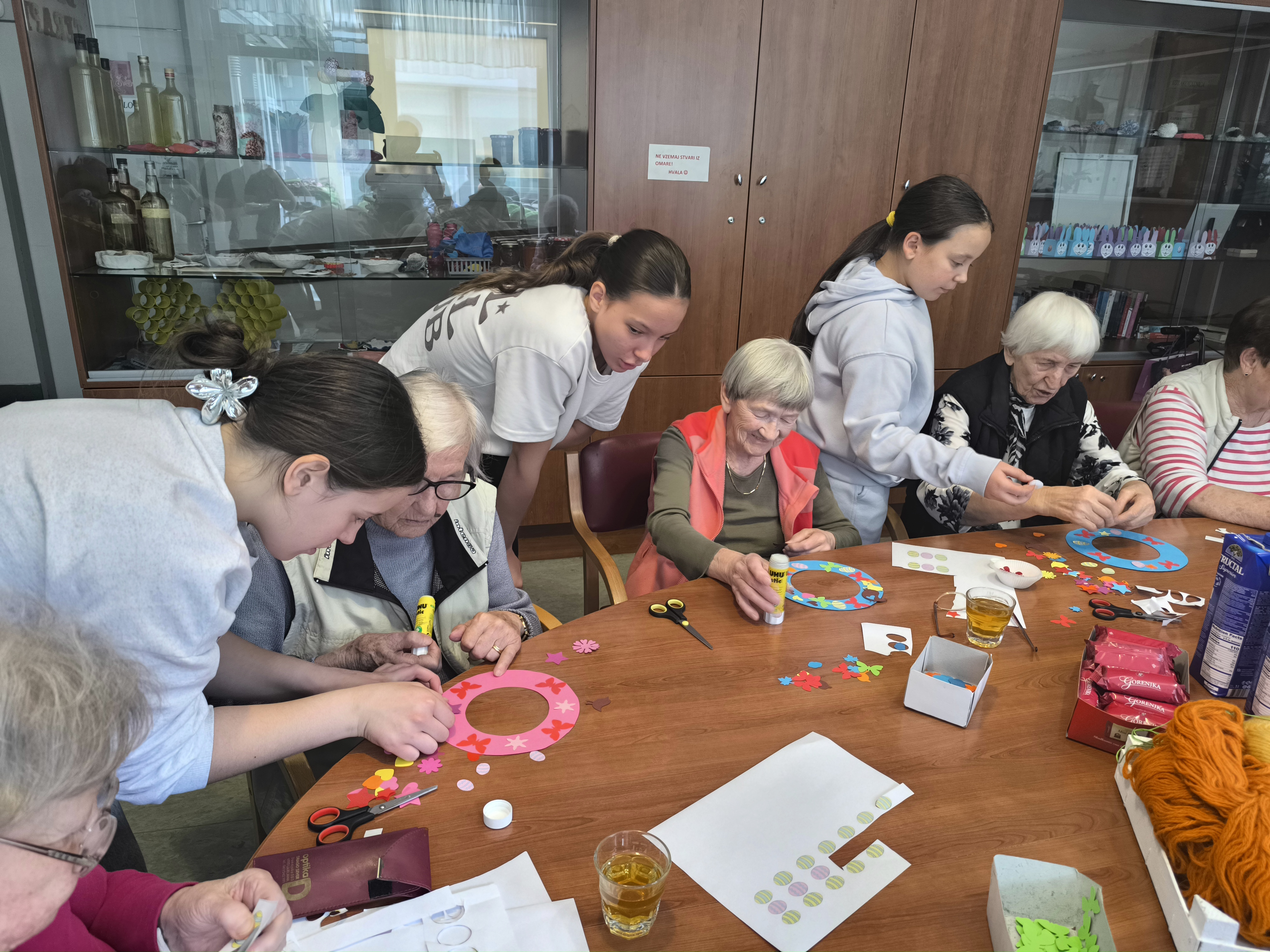 2.4.2026 so nas obiskale učenke in učenec OŠ Jožeta Moškriča. Njihov prihod je med stanovalkami vzbudil veliko veselja, saj so se vsi že veselili skupnega ustvarjanja in druženja. Za stanovalke so pripravili velikonočno delavnico, na kateri smo skupaj izdelovali pisane venčke.
