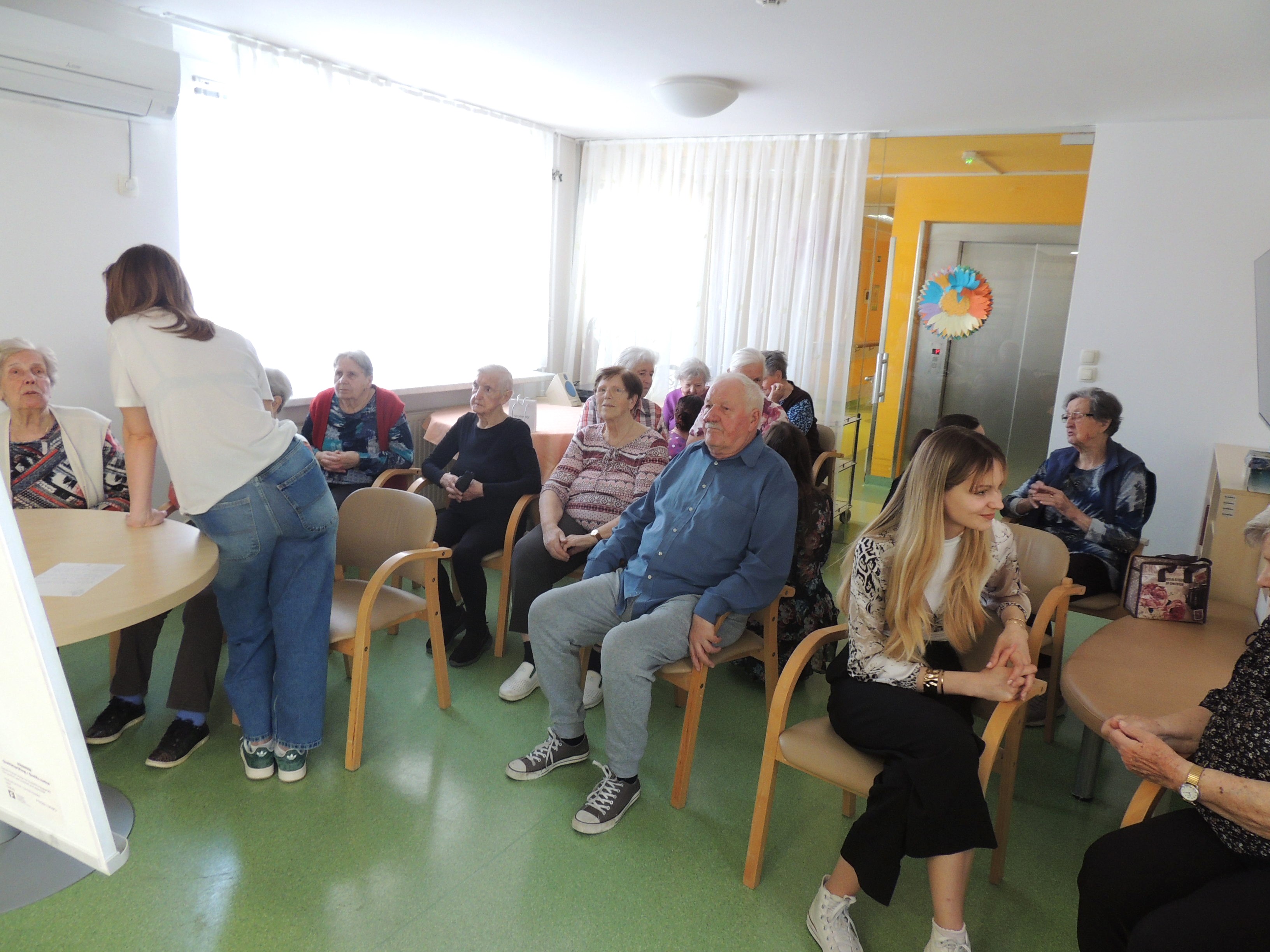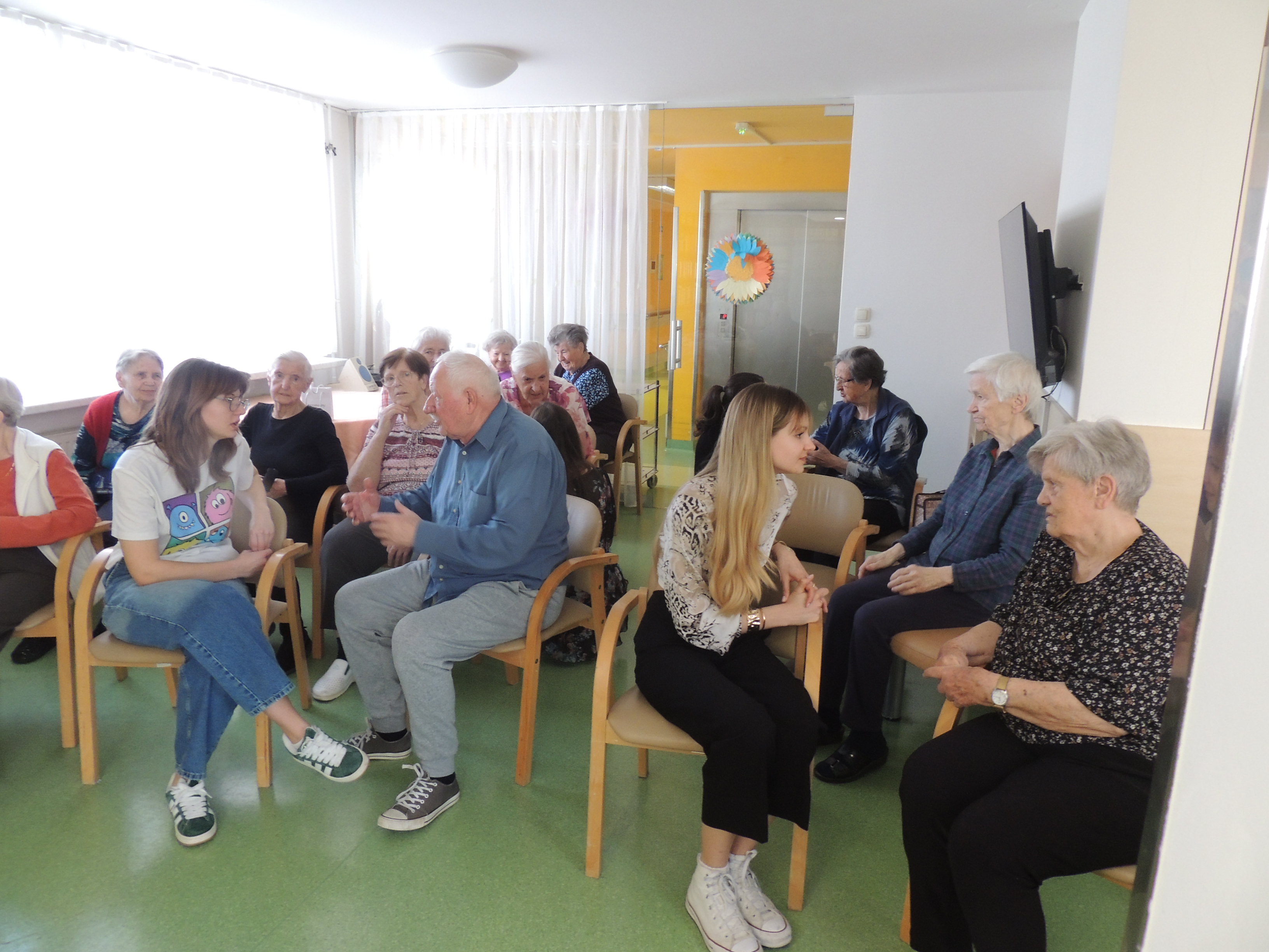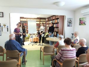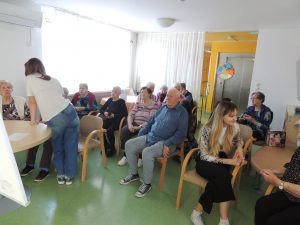 V petek, 4. aprila, je bila v knjižnici Doma starejših občanov Bežigrad izvedena delavnica na temo empatične komunikacije, ki so jo pripravile študentke psihologije Filozofske fakultete v okviru predmeta Psihologija učenja. Delavnica je stanovalkam in stanovalcu na prijeten in izkustven način približala pojem empatije ter spodbudila razmislek o njenem pomenu v vsakdanji komunikaciji. V uvodu so stanovalke in stanovalec delili svoje razmišljanje o empatiji, nato pa so študentke predstavile razliko med empatijo, sočutjem in simpatijo. Sledile so pantomimske uprizoritve čustvenih položajev, ki so sprožile zanimivo razpravo o prepoznavanju in izražanju čustev. V nadaljevanju so študentke predstavile različne ravni komunikacije – razumsko, čustveno in telesno. Stanovalke in stanovalec so v skupinah razmišljali, kako se v težkih življenjskih položajih lahko empatično odzovemo.  Delavnico so zaključili z ustvarjalno dejavnostjo Pismo srca, kjer so stanovalci prejeli spodbudna sporočila za različna čustvena stanja. Sporočila so ostala dostopna v knjižnici doma. Stanovalke in stanovalec so delavnico zapustili nasmejani in z mislijo, da si želijo še več takšnih srečanj, ki združujejo predavanje, pogovor in skupinsko delo.