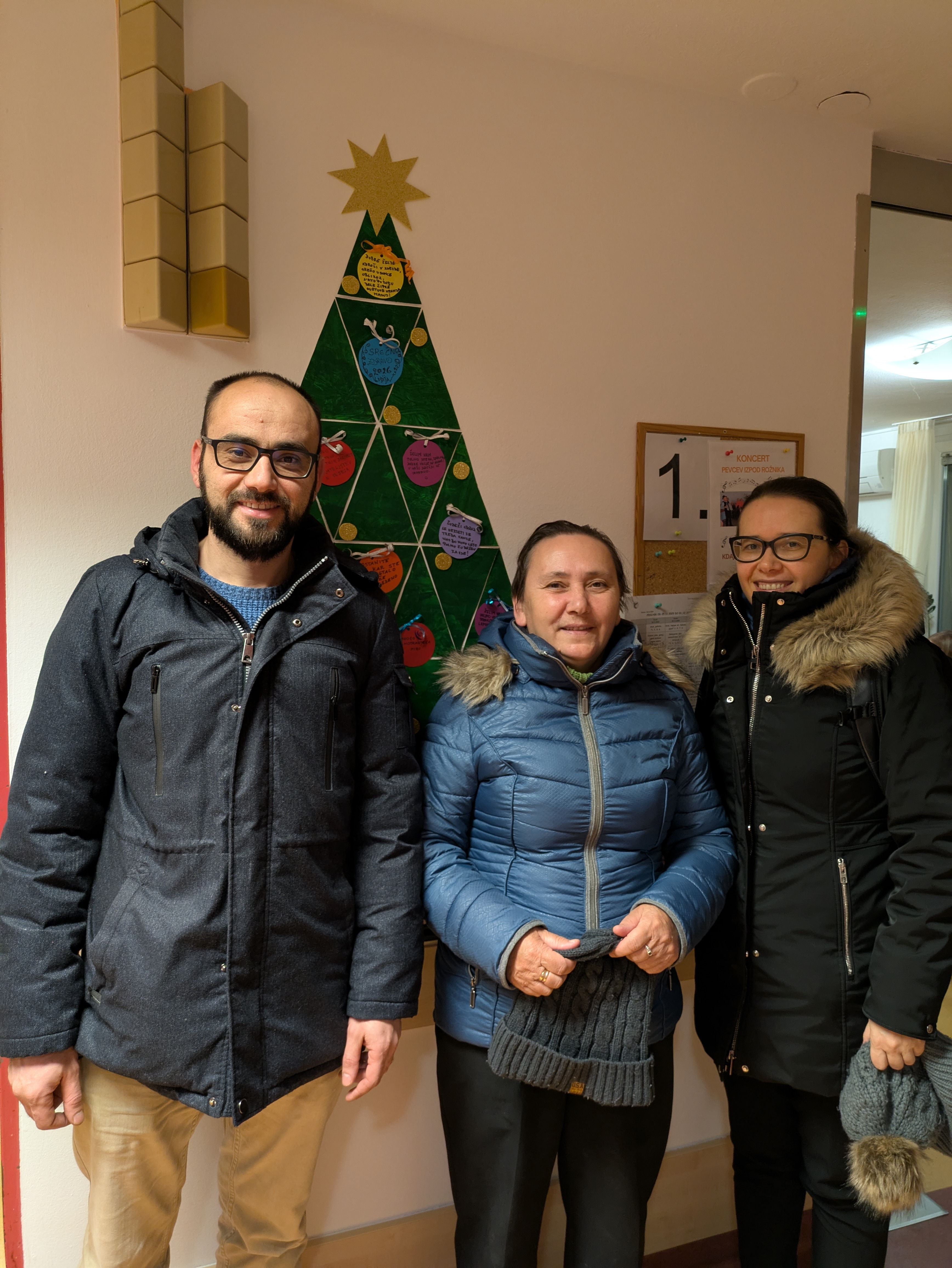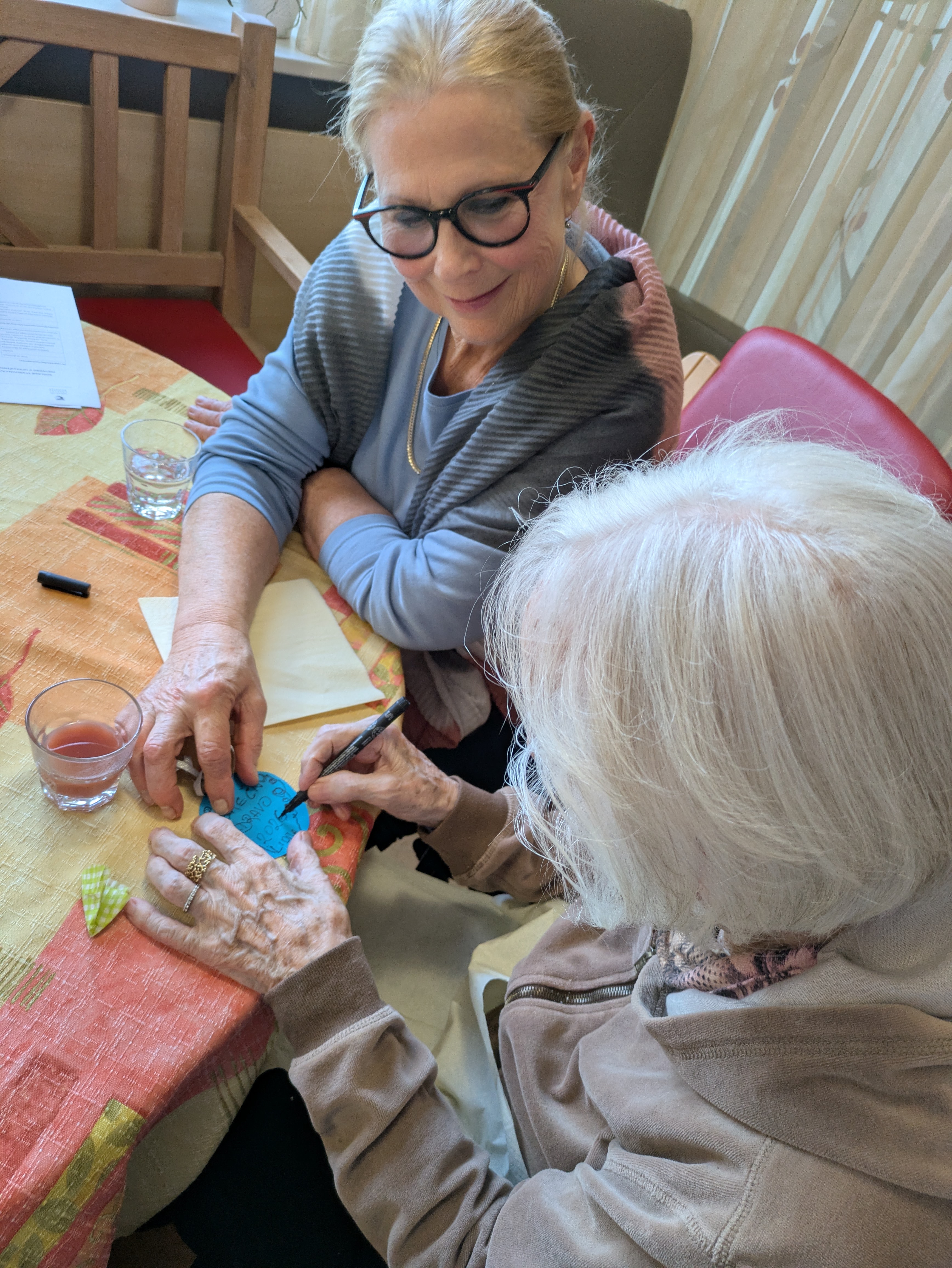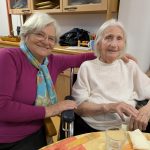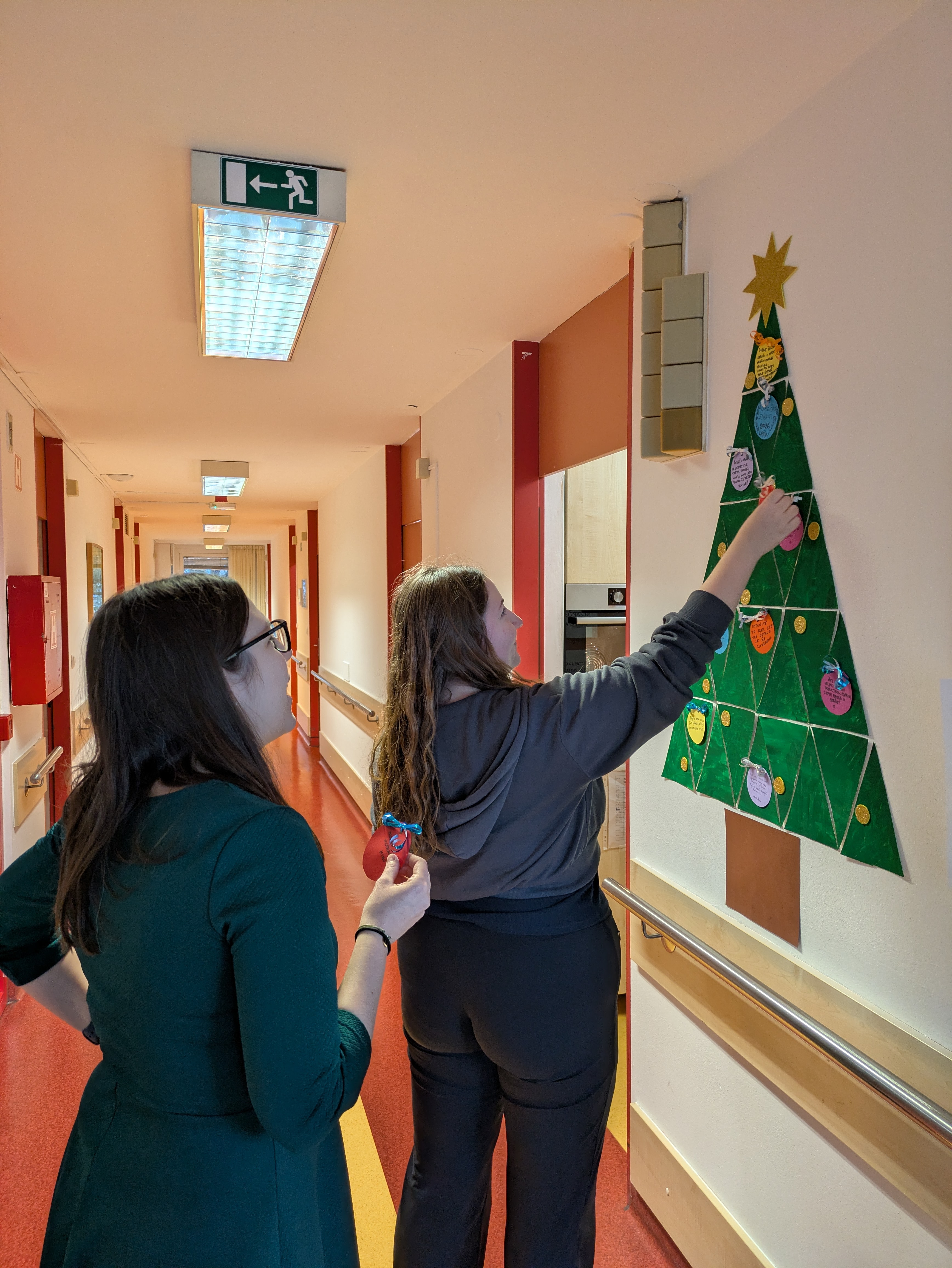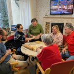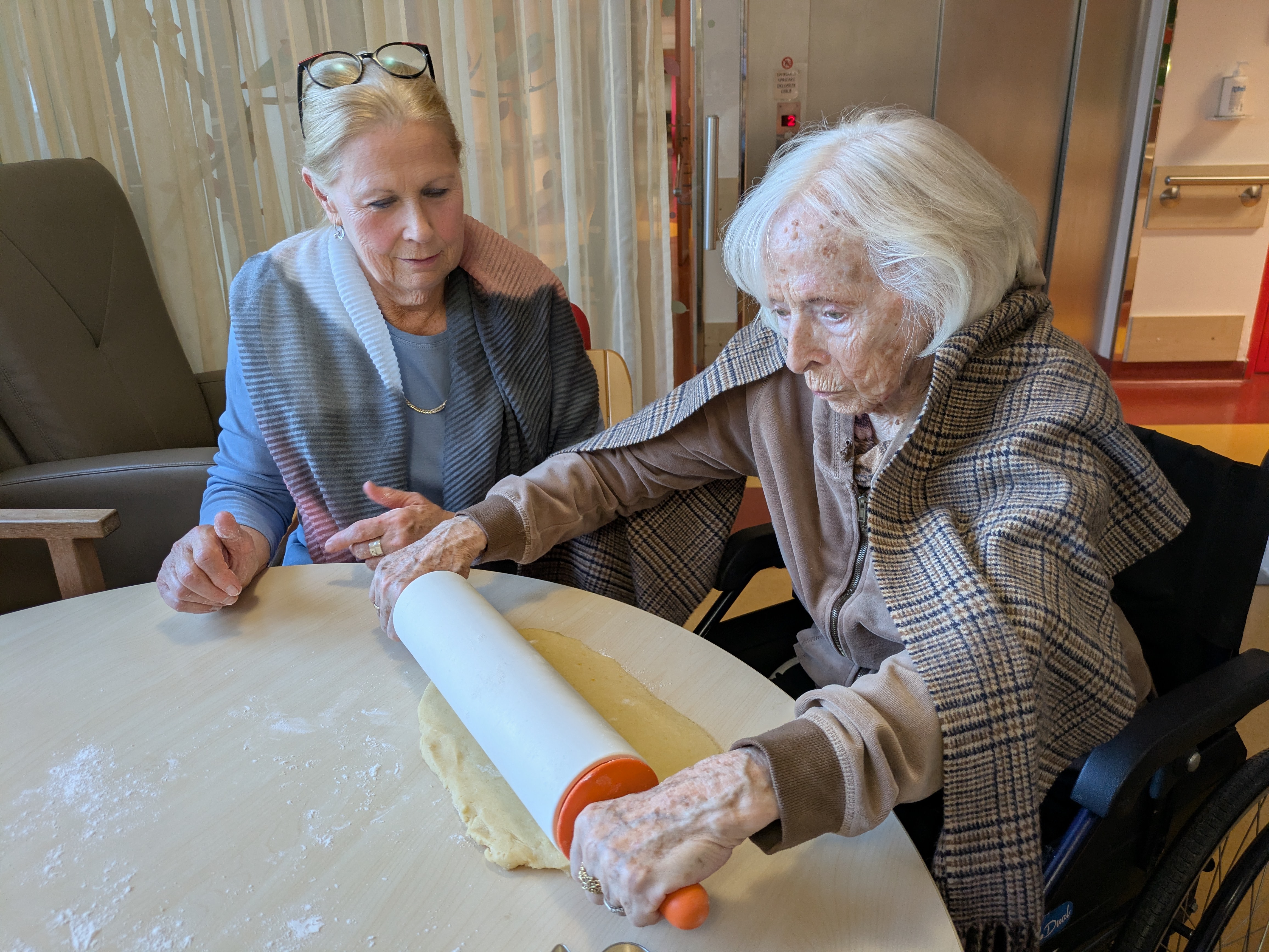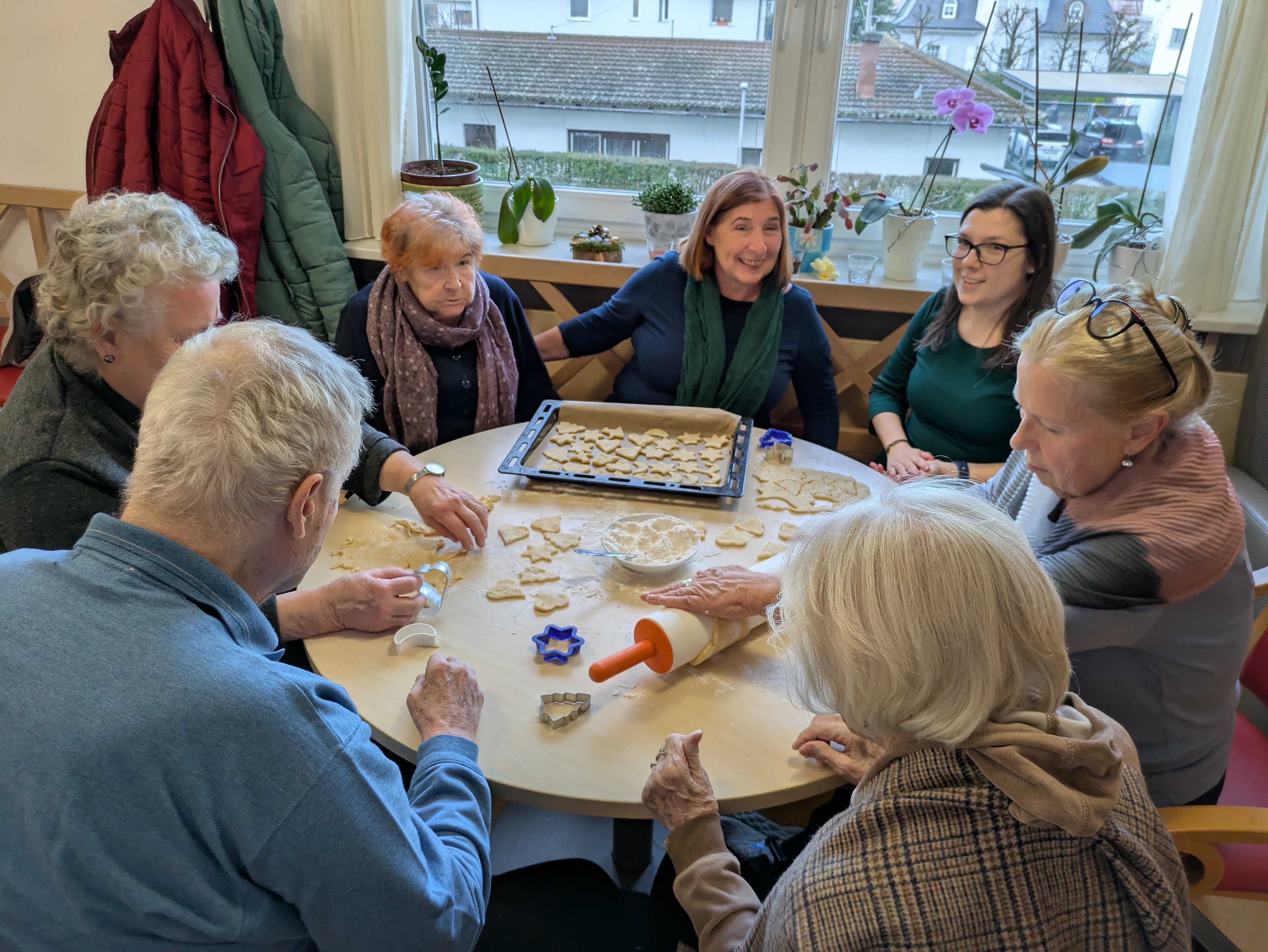 V sredo, 26. 11. 2025 je v dnevnem prostoru na enoti potekalo druženje stanovalcev z demenco in njihovih sorodnikov. Veseli smo, da so se v tako velikem številu odzvali našemu vabilu in se nam pridružili v tem predprazničnem času. Poslušali smo praznično glasbo, se smejali in klepetali. Tokrat se nam je pridružila tudi tri leta stara pravnukinja naše stanovalke in prinesla še dodatno veselje ob pogledu na iskrene otroške oči. Naše obiskovalce smo prosili, da nam pomagajo okrasiti smrečico, ki krasi steno pred vhodom v dnevni prostor. Na papirnate okraske so nam napisali želje in lepe misli, nato smo jih prilepili na smrečico, ob kateri so se ob zaključku srečanja nekateri tudi fotografirali. Ob praznični glasbi nam prija vonj sveže pečenih piškotov, zato smo se peke lotili tudi mi. Stanovalci so s sorodniki valjali testo in oblikovali piškote. Naša študentka socialnega dela Brina je ves čas skrbno pazila, da so se vsi piškoti spekli. Srečanje smo zaključili s klepetom ob soku in svežih piškotih. Vsem se zahvaljujemo za obisk in izrečene lepe želje. Veselimo se takih srečanj tudi v prihodnje.