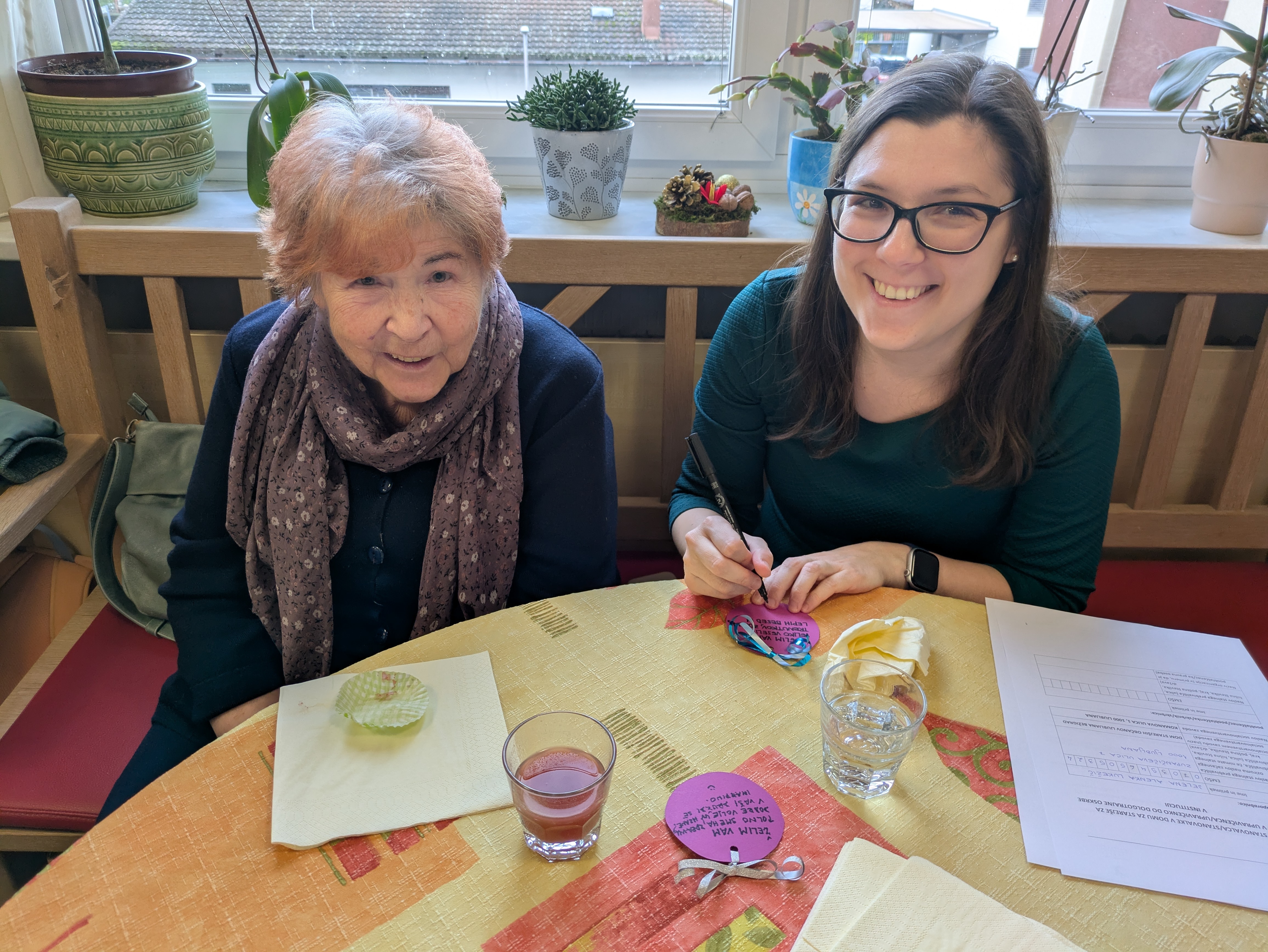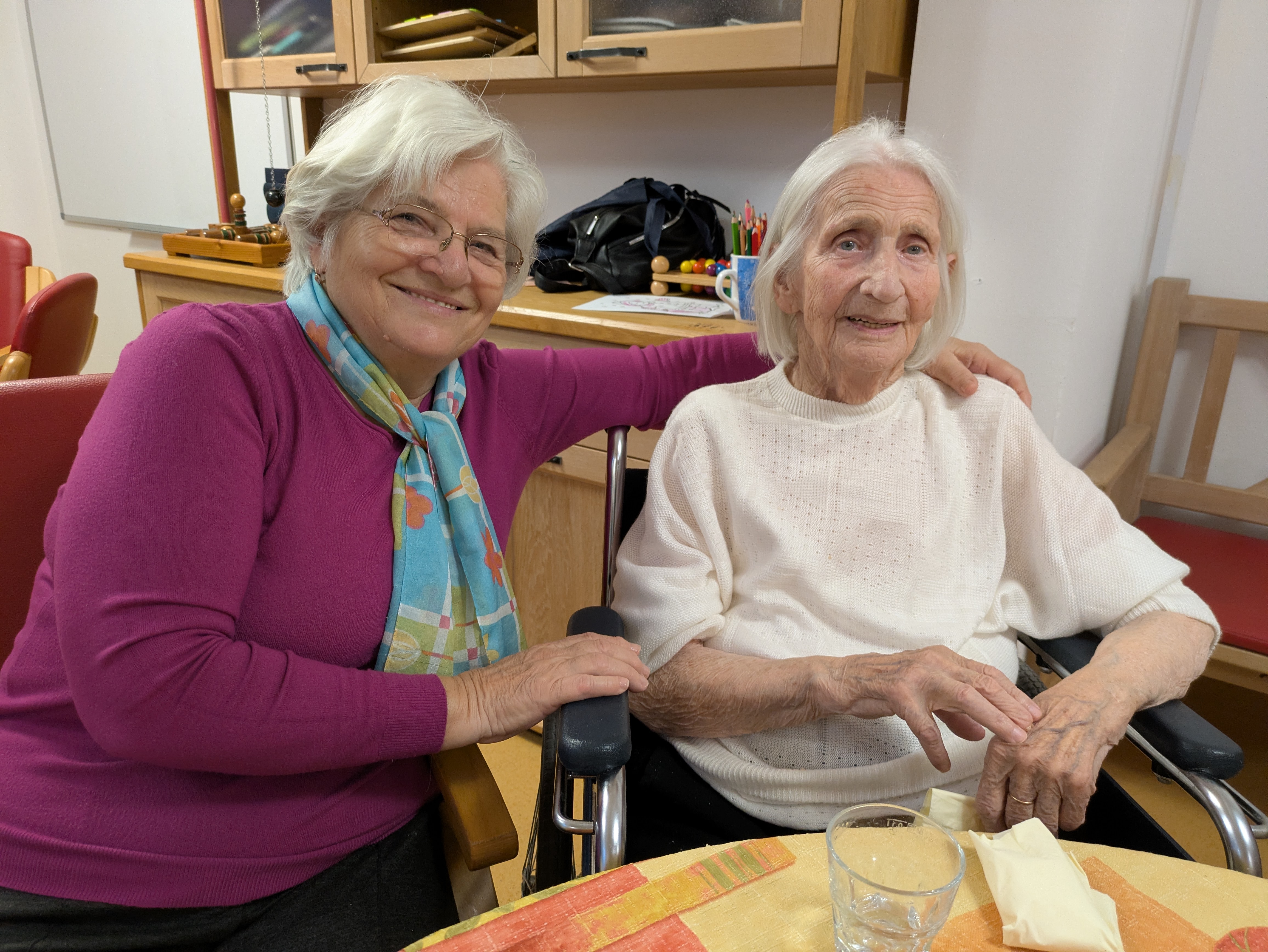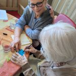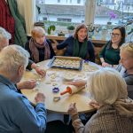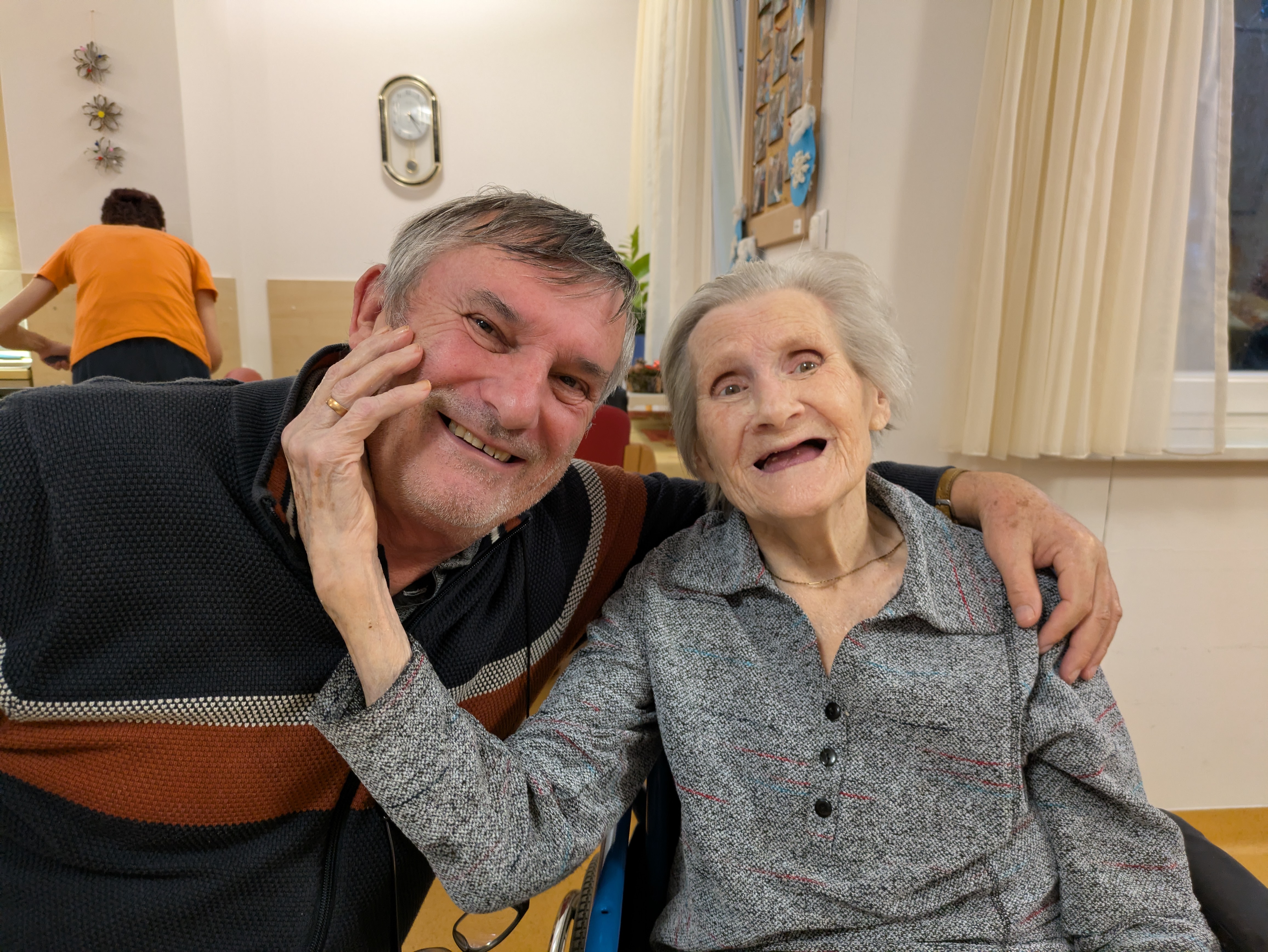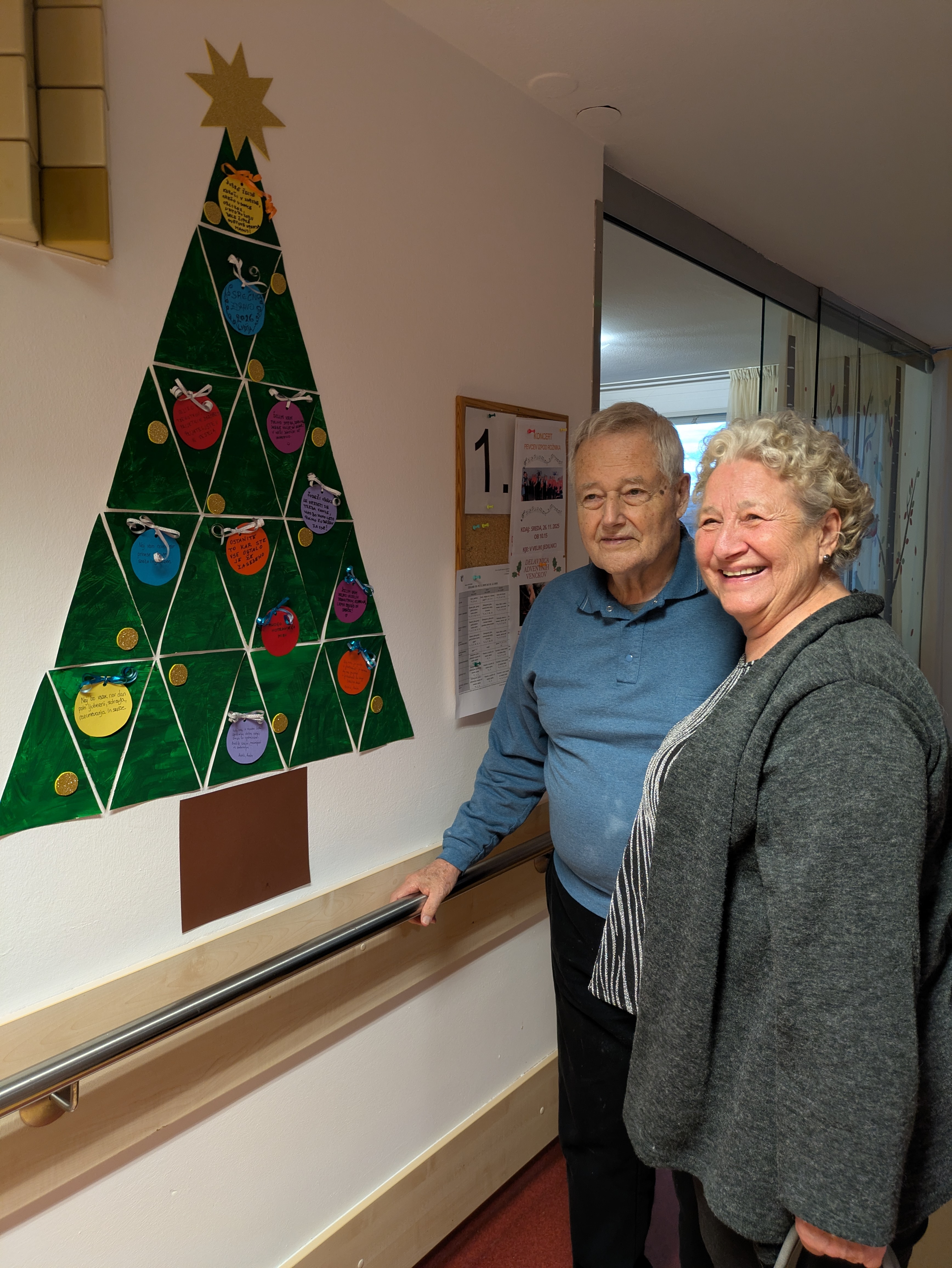 V sredo, 26. 11. 2025 je v dnevnem prostoru na enoti potekalo druženje stanovalcev z demenco in njihovih sorodnikov. Veseli smo, da so se v tako velikem številu odzvali našemu vabilu in se nam pridružili v tem predprazničnem času. Poslušali smo praznično glasbo, se smejali in klepetali. Tokrat se nam je pridružila tudi tri leta stara pravnukinja naše stanovalke in prinesla še dodatno veselje ob pogledu na iskrene otroške oči. Naše obiskovalce smo prosili, da nam pomagajo okrasiti smrečico, ki krasi steno pred vhodom v dnevni prostor. Na papirnate okraske so nam napisali želje in lepe misli, nato smo jih prilepili na smrečico, ob kateri so se ob zaključku srečanja nekateri tudi fotografirali. Ob praznični glasbi nam prija vonj sveže pečenih piškotov, zato smo se peke lotili tudi mi. Stanovalci so s sorodniki valjali testo in oblikovali piškote. Naša študentka socialnega dela Brina je ves čas skrbno pazila, da so se vsi piškoti spekli. Srečanje smo zaključili s klepetom ob soku in svežih piškotih. Vsem se zahvaljujemo za obisk in izrečene lepe želje. Veselimo se takih srečanj tudi v prihodnje.