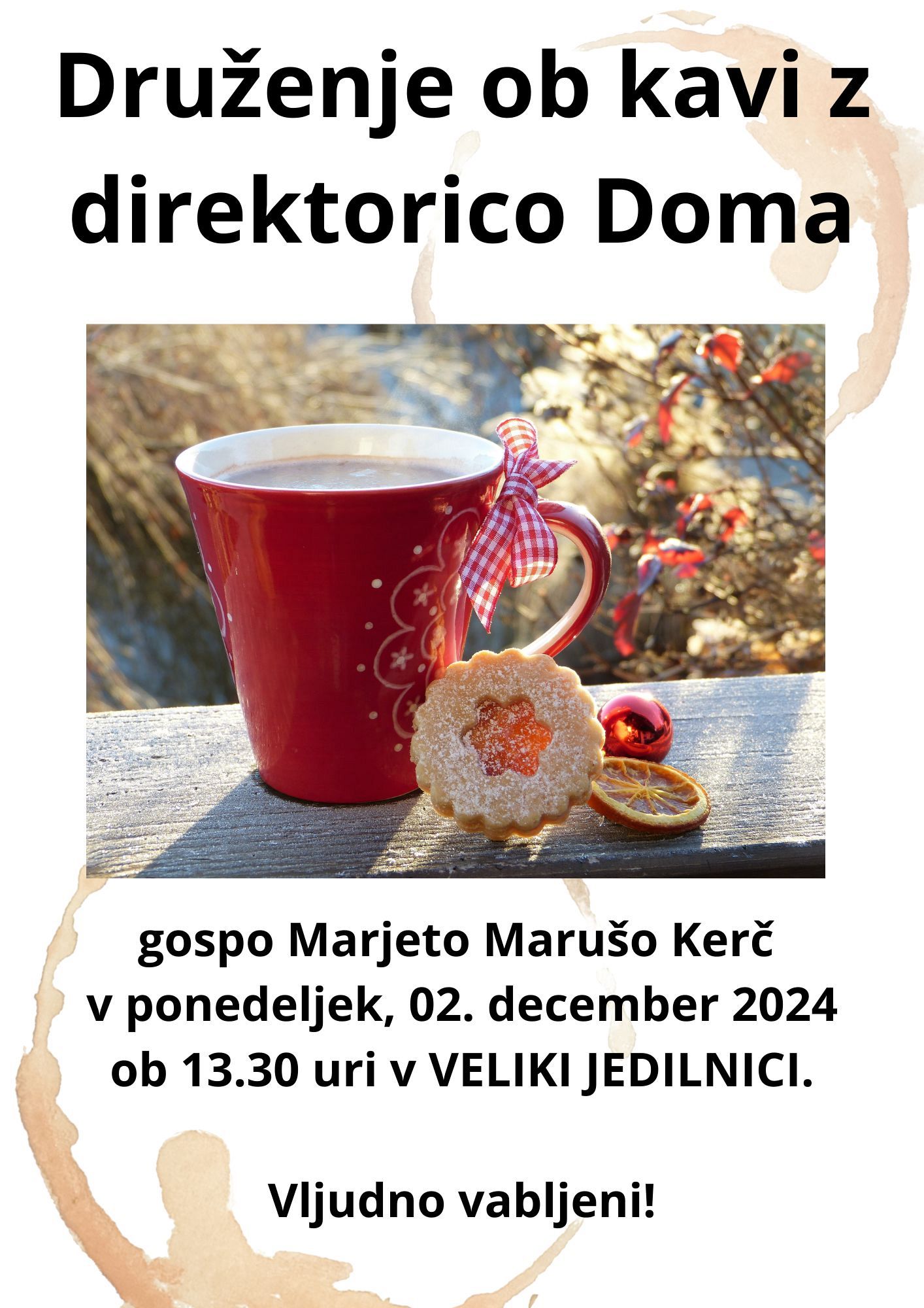 Druženje ob kavi z direktorico doma Marjeto Marušo Kerč.