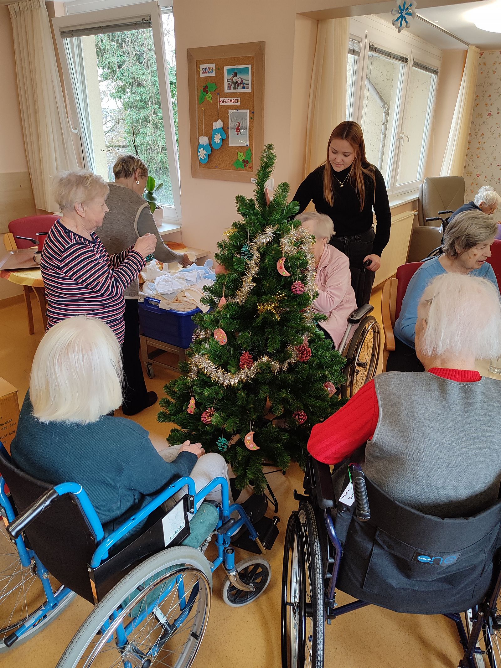 FotogalerijaObjavljeno: 7.12.2023 Okraševanje božičnega drevesca in peka palačink na enoti za demenco