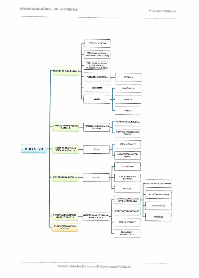Dom starejših občanov Ljubljana Bežigrad sodi med javne socialno varstvene zavode in nudi osnovno in socialno oskrbo, zdravstveno nego, fizioterapijo ter aktivnosti delovne terapije  205 starejšim stanovalcem, ki bivajo na stanovanjskih in v negovalnih enotah, ter 13 mlajšim invalidom, ki bivajo v pritličju v enoposteljnih sobah. Starejšim stanovalcem so na voljo naslednje namestitve: 102 enoposteljnih, 49 dvoposteljnih, 2 štiriposteljni sobi in pet apartmajev za zakonce. Dom nudi tudi začasno bivanje in dnevno varstvo za manjše število uporabnikov.