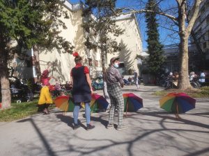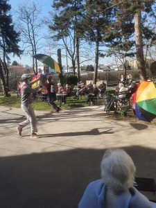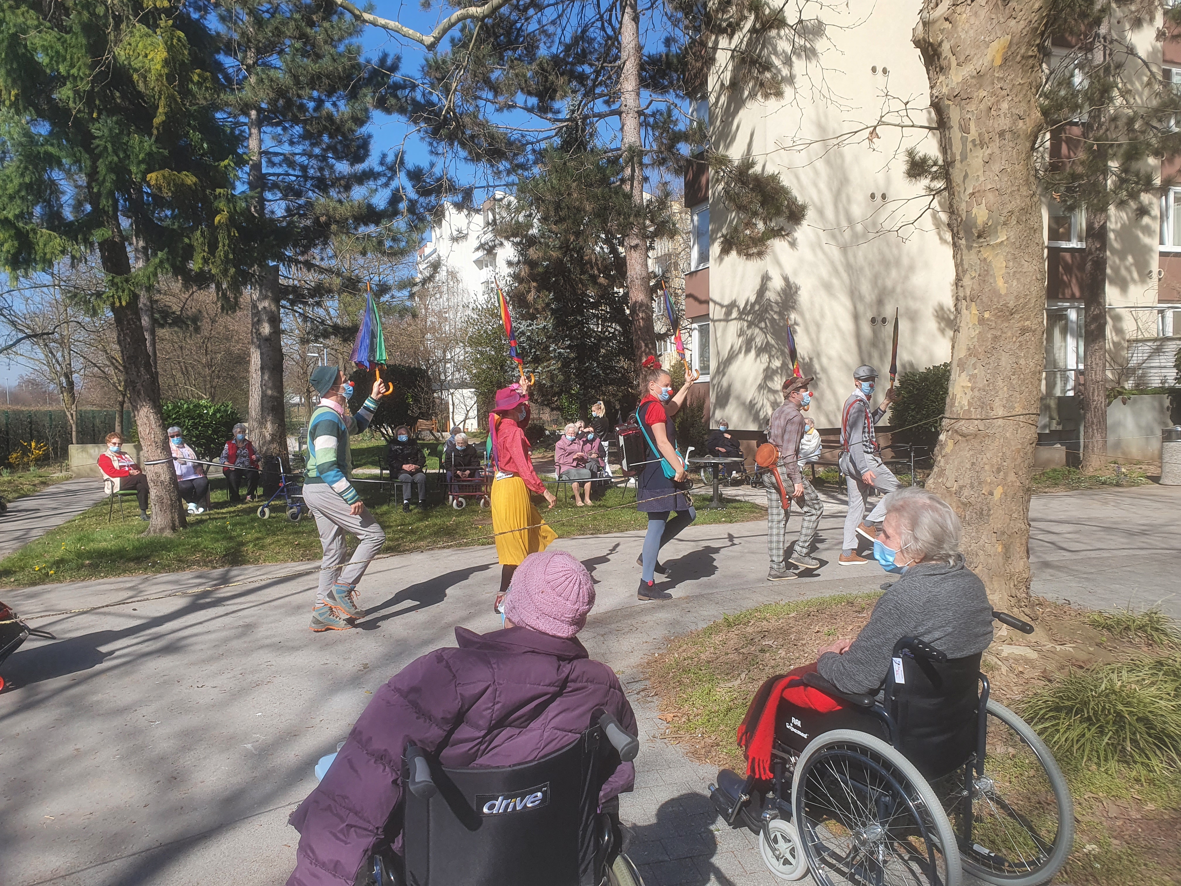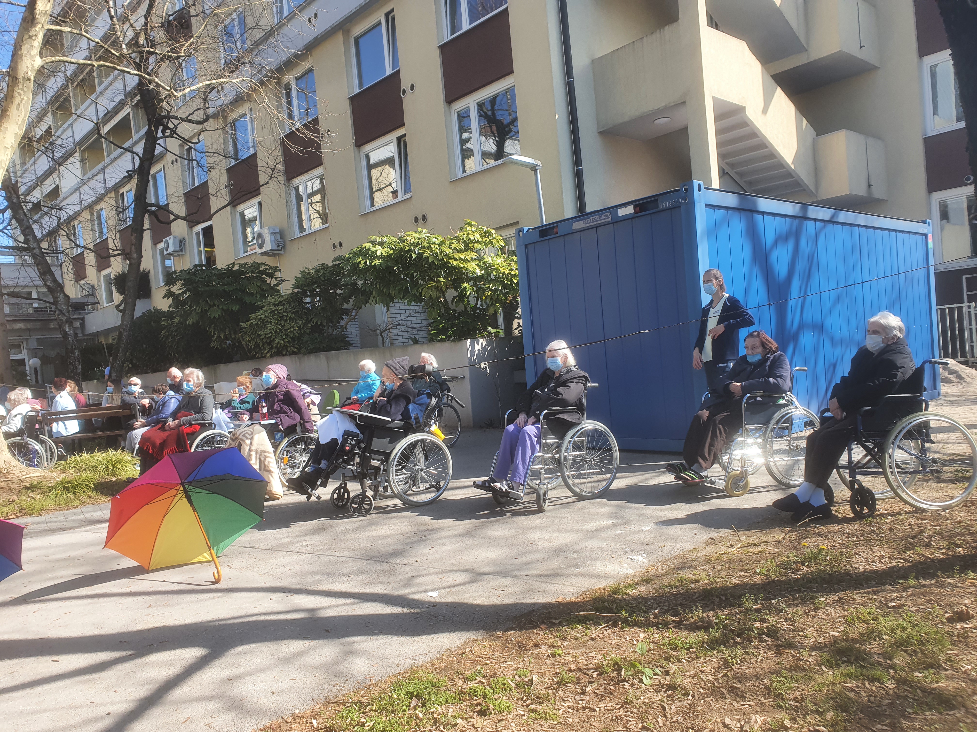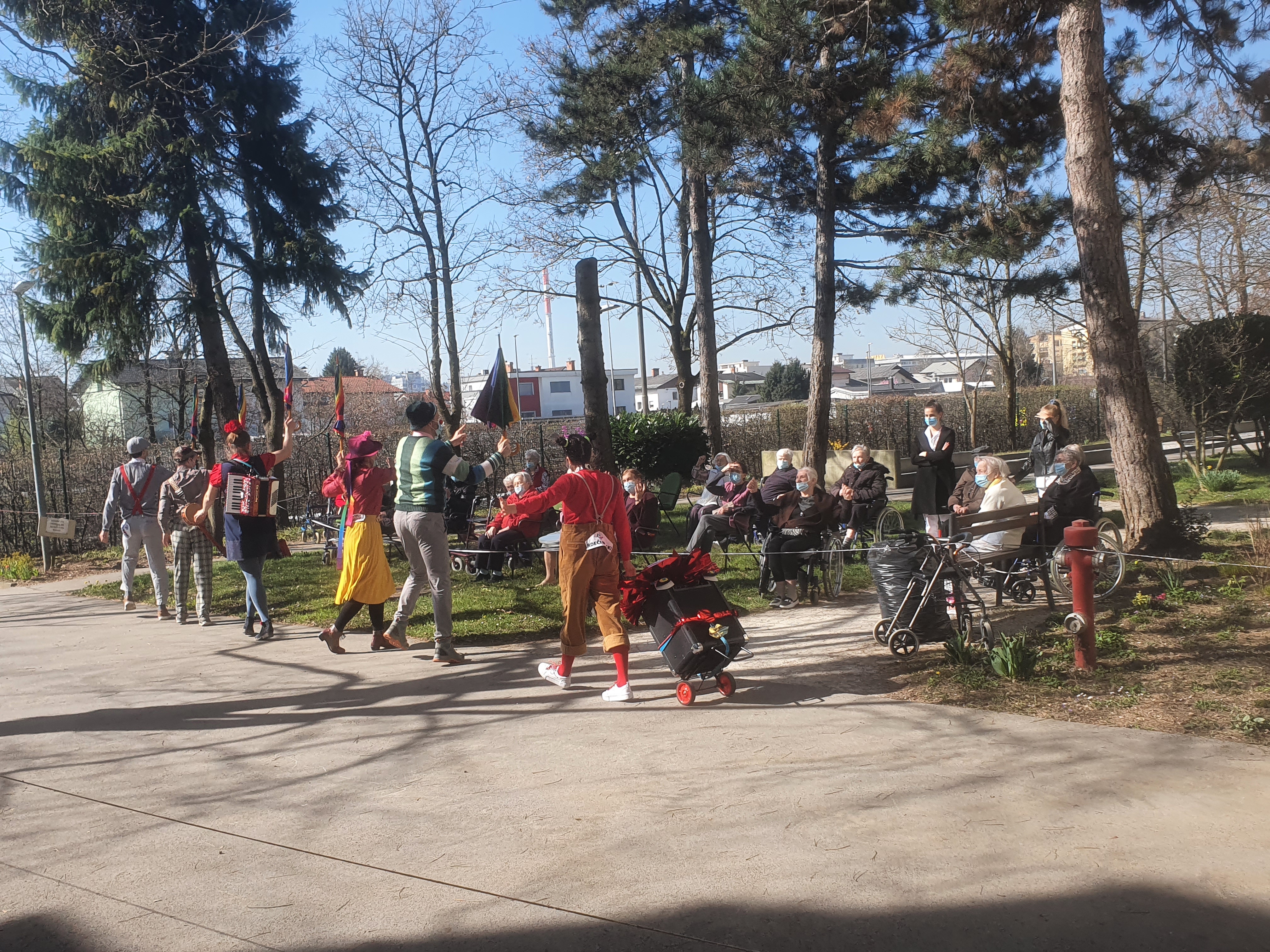 Obisk rdečih noskovObjavljeno: 2.4.2021 Obisk rdečih noskovPonovno so naše stanovalce obiskali rdeči noski in popestrili dan našim stanovalcem. Za obisk se jim iskreno zahvaljujemo.Med stanovalci in nastopajočimi je bila vzdrževana medsebojna razdalja minimalno 3 metre.Foto in video utrinki: