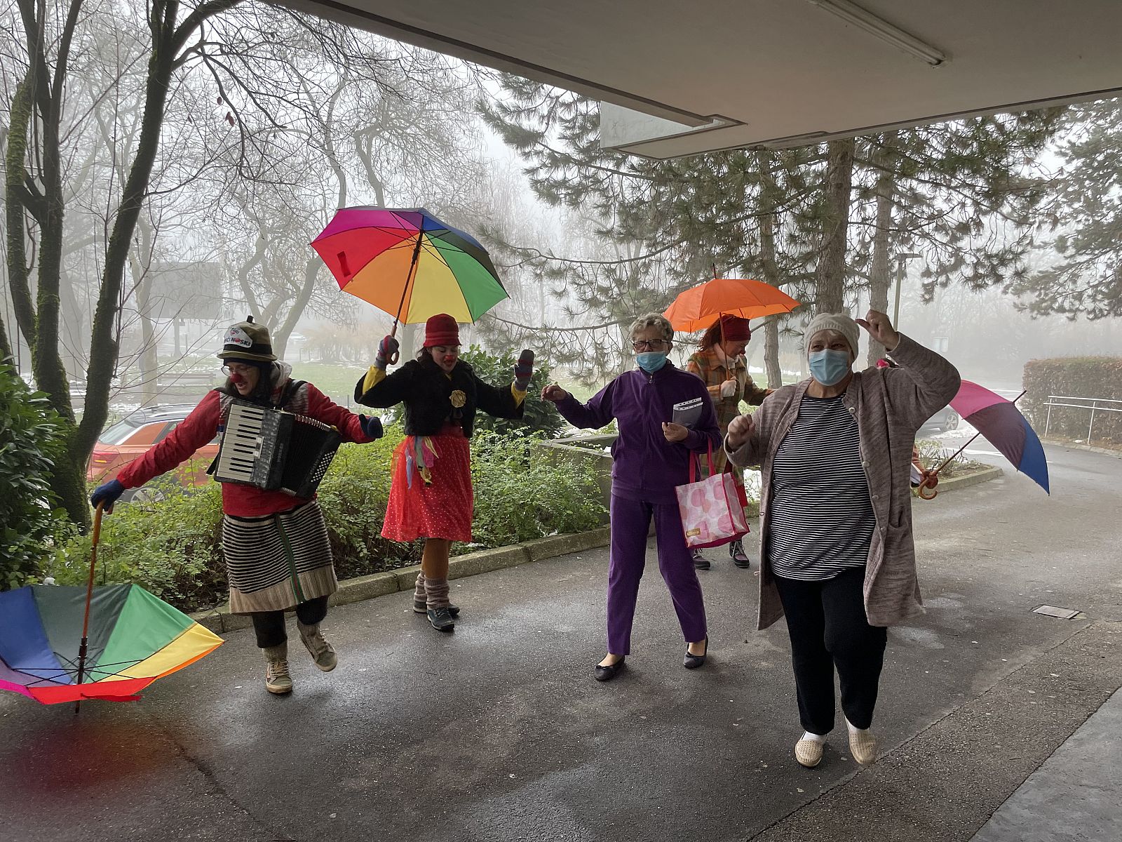 V petek, 17.12.2021, smo bili deležni norčavega obiska iz društva Rdečih noskov, ki so s svojimi igrivim nastopom narisali nasmeh na obraze naših stanovalcev in zaposlenih, nekatere tudi do solz ganili. Obisk so stanovalci spremljali z balkonov in oken svojih sob, ter iz prostor delovne terapije in bifeja.