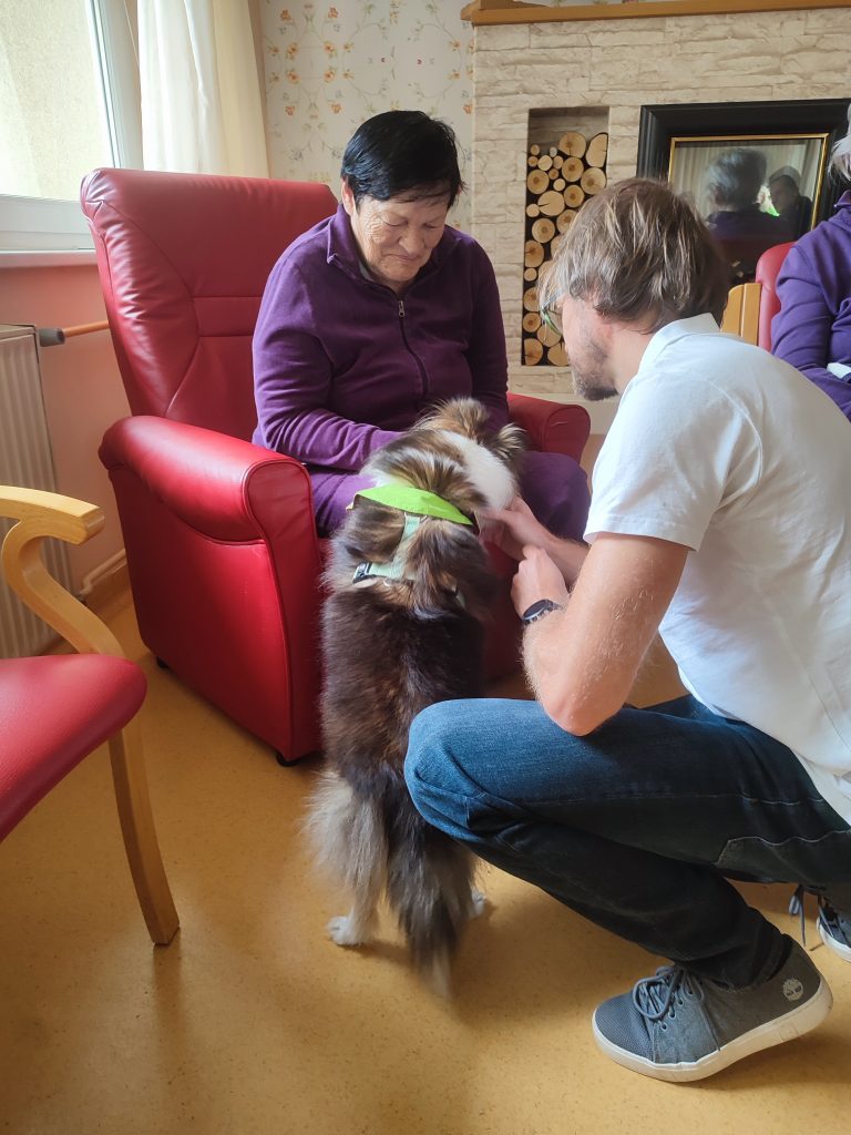 V tem tednu smo se po nekaj mesecih zopet razveselili obiska terapevtskega para, vodnika Primoža in psičke Lumi. Srečanje je bilo prijetno. Pokazala sta nam, kaj vse znata. Primož nam je povedal veliko zanimivega o psički, o njunih prigodah in nam pokazal tudi nekaj njenih fotografij. Psički smo lahko dali priboljške, jo božali in ji priskrbeli vodo.