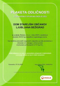 Plaketa odličnosti o zmanjševanju vpliva na okolje 2024