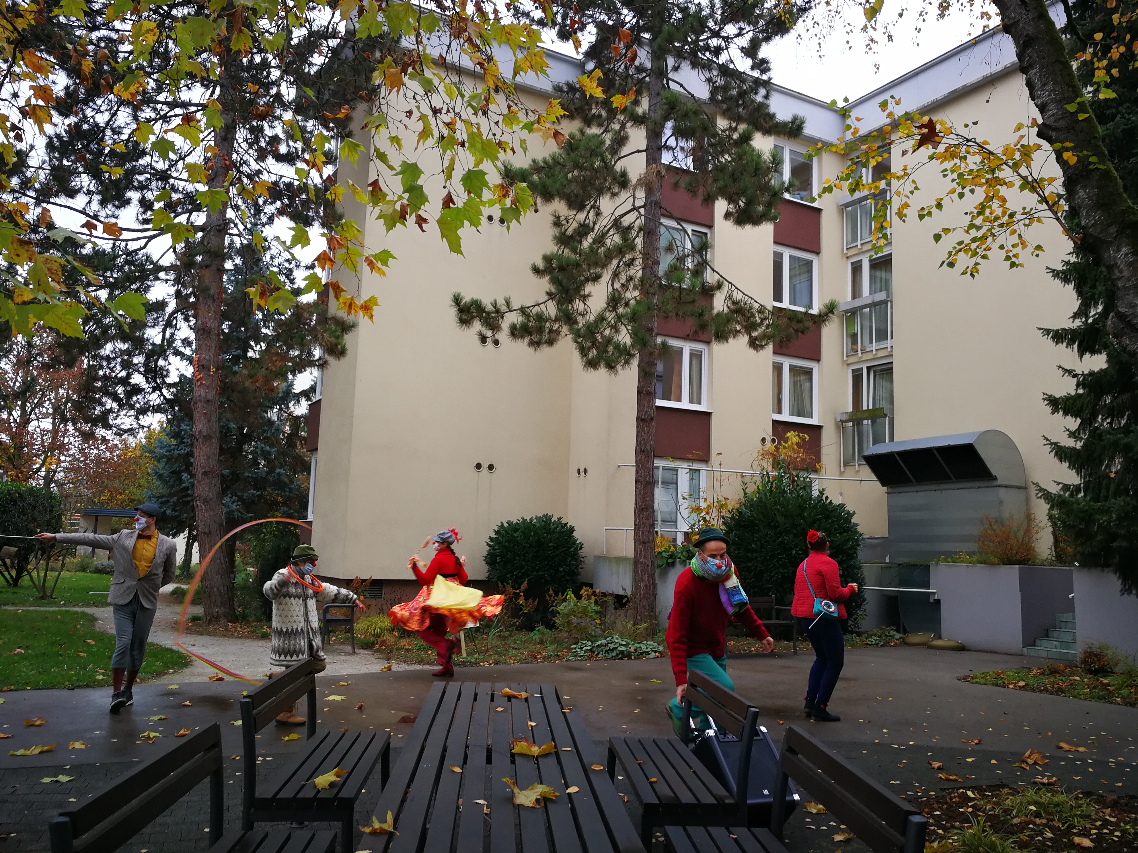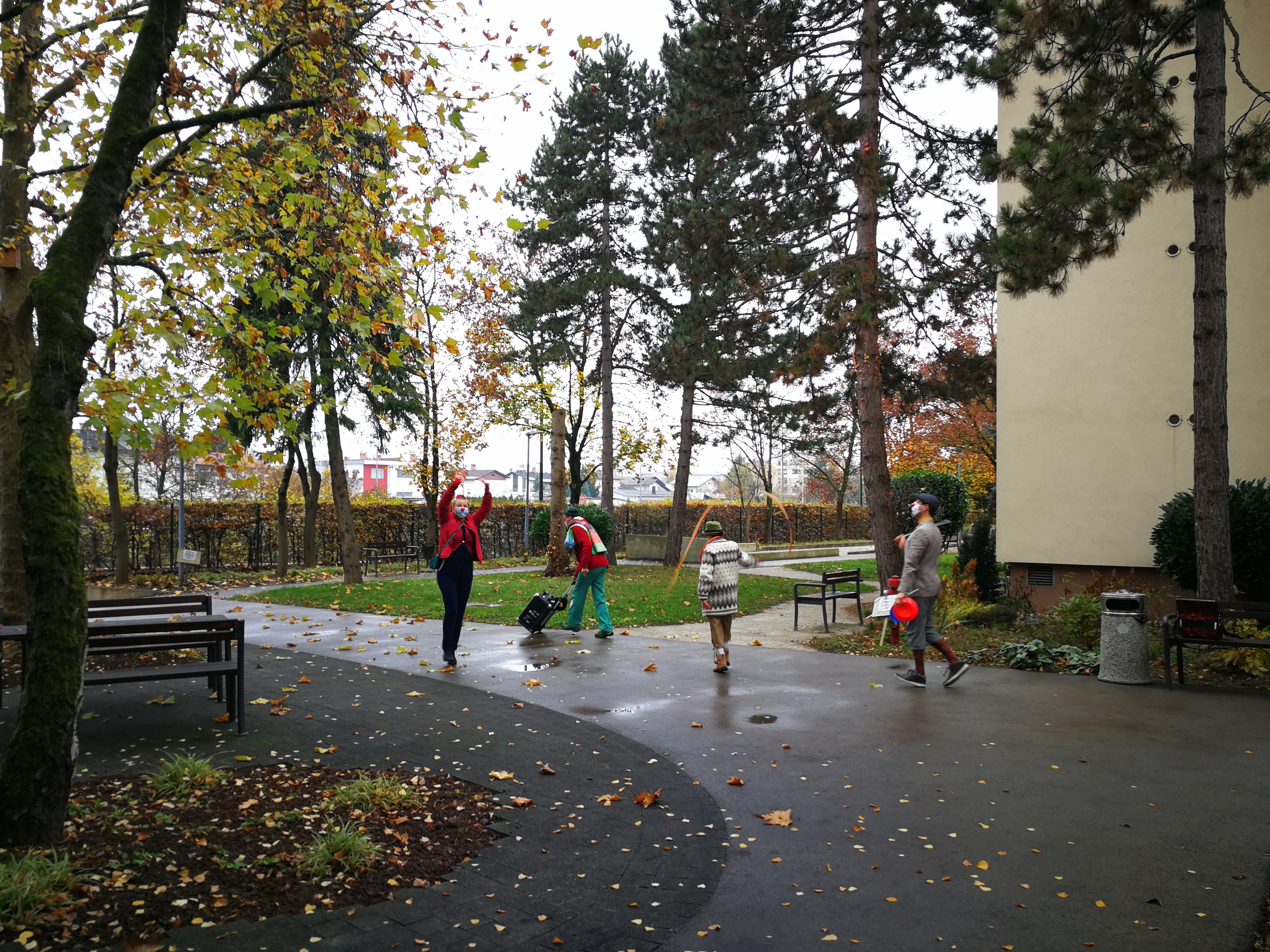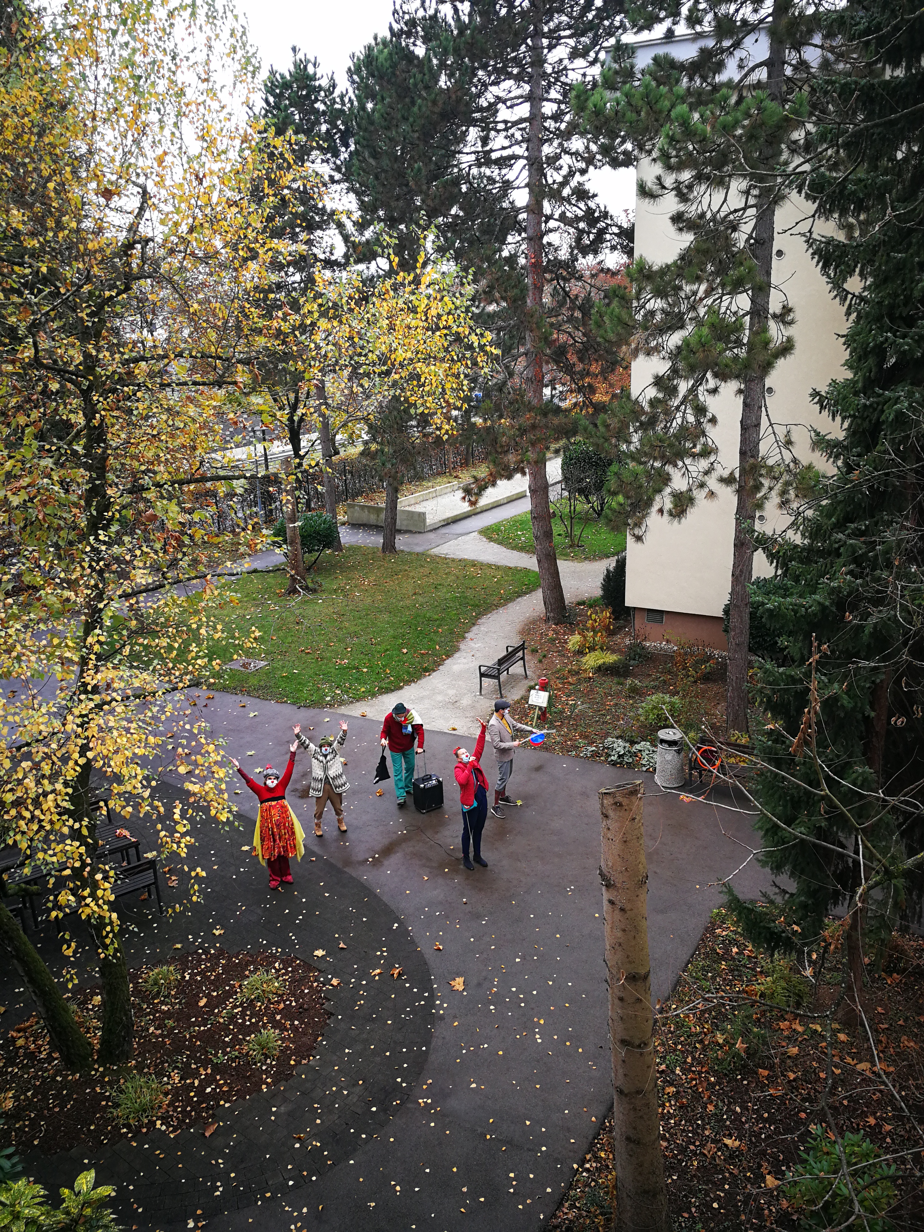 Stanovalci so njihov nastop spremljali z balkonov in oken Doma ter se ob tem zelo zabavali.