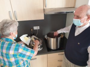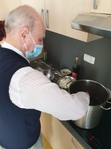 Ustvarjalno kuharski kotiček – foto utrinkiObjavljeno: 30.4.2021 Ustvarjalno kuharski kotiček – foto utrinkiTokrat so stanovalci v ustvarjalno kuharskem kotičku pripravili odlično skutino pecivo ter skuhali borovničev liker.