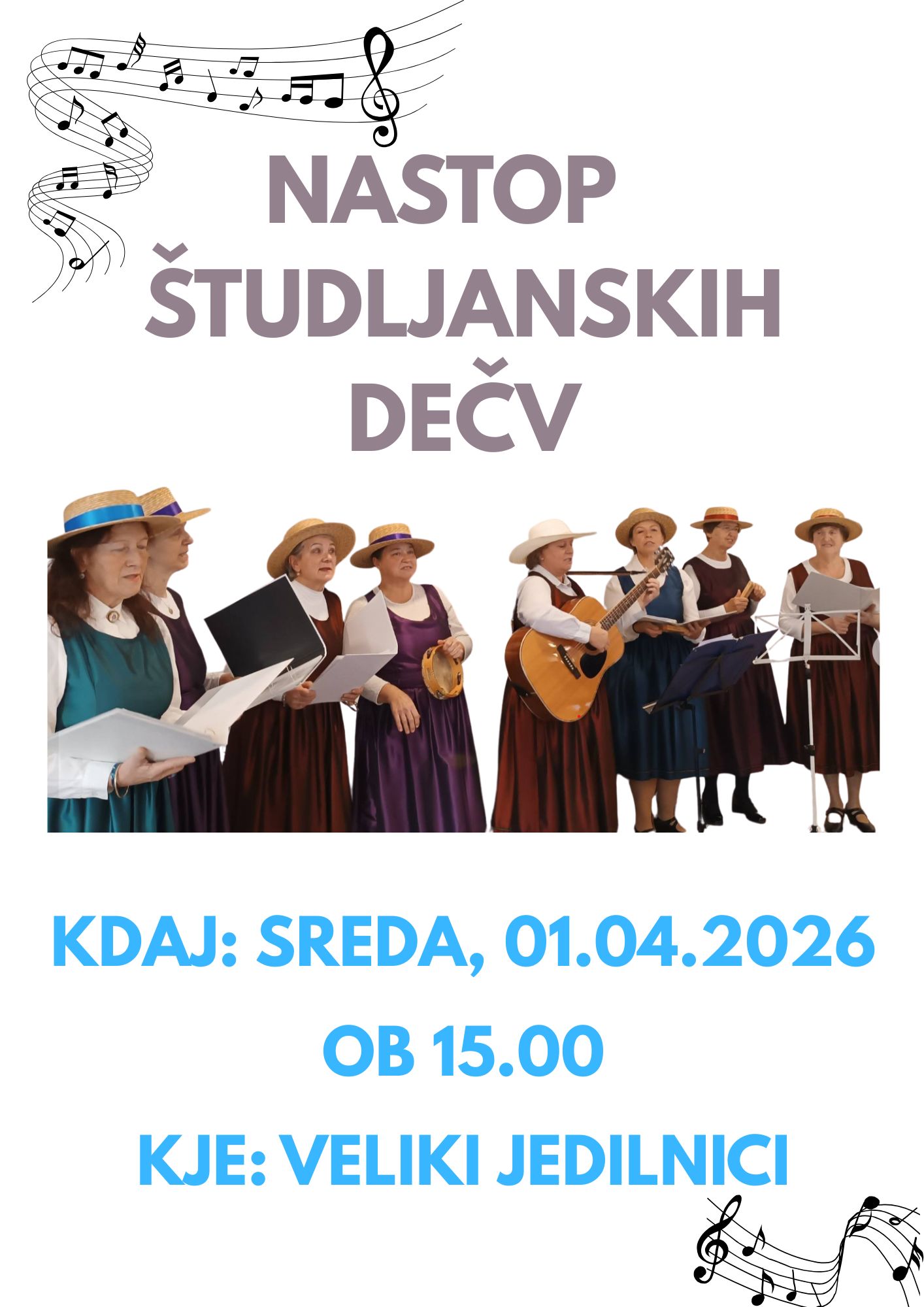 V sredo, 01.04.2026 ob 15.00 v veliki jedilnici Nastop Študljanske dečve
